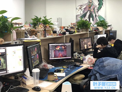 《轮回诀》研发同学到深夜了还在埋头苦干 4. 《轮回诀》中每个人物都有一个明显的颜色基调,人物的用色上有什么讲究? 还是要从故事角度出发,其实颜色本身会有自己表达,比如暖色会给人带来外向与热情的感觉,另外我们游戏也有竞技PK的玩法,也要从战斗的时候能快速区分的角度考虑。 5. 我们常说从一个人的眼睛可以看透一个人的内心,这一点在《轮回诀》的角色设定中是否有所展现? 我们尽量让每个角色的眼睛能匹配性格,这当然也不容易,模型做好了后往往我们还要在修一次眼睛。比如像地藏,想突出他病娇的属性,就把瞳孔做的很锐利。十殿阎王我们也刻意做了异瞳表现他的特色哦!