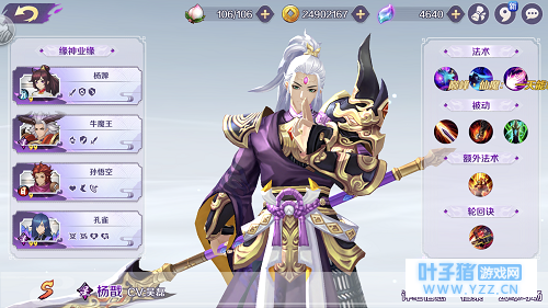 图2·《轮回诀》 释放技能前保持思路清晰 东海龙王虽然是A级缘神,但是技能带来的限制效果绝对是超A级的,效果显著时间长。但自身没啥爆发,而且技能CD贼长,适合放风筝溜敌人,给队友创造输出空间。 【杨戬-你到哪我就到哪】 优点:简单粗暴,稳定先手,追杀无敌。 缺点:非要挑一个的话,额外技能回复量不明显。
