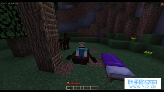 从高处跳到一个树干的周围,在掉落的瞬间铺上藤蔓。跳到树干顶上是不行的,跳到树干顶上如果相对距离较大,史蒂夫会摔死的。铺上了藤蔓的树干史蒂夫可以在树上爬,这样从树干上爬下来,也能减免掉落伤害。 五、落地梯子
