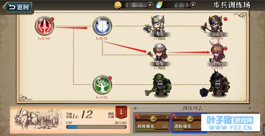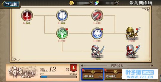 某个地方升到一定阶段,自然就会更换材料了。那便是中级教材,这种教材需求量会特别高,所以一般建议在需要用到中级教材的点上点到5级就好了,在之后把线开到三级兵之前,然后把多余的中级教材拿来凑训练场经验,这样就能达到一个资源利用的最大化。