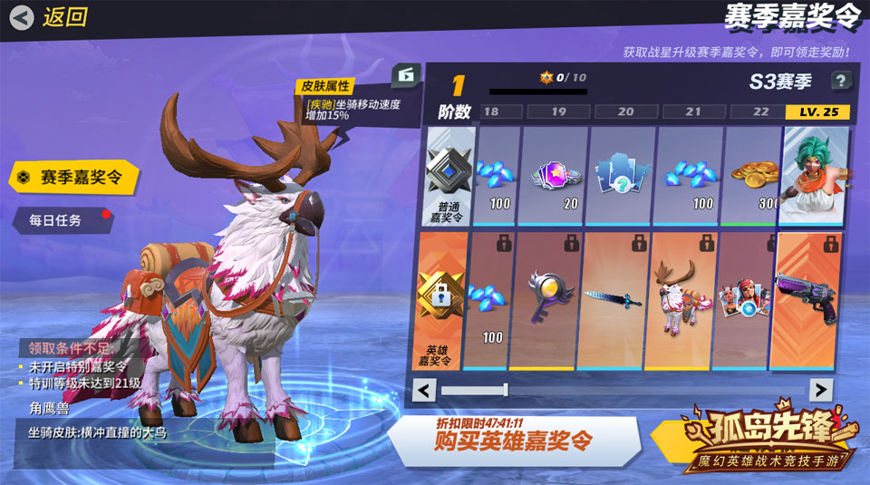 征战荣耀英雄之路,彰显实力大放光彩!1月9日,网易首款魔幻多英雄战术竞技手游《孤岛先锋》S3赛季震撼开启,更为畅爽的开黑体验,更加丰厚的赛季奖励,让热血与激情肆意燃烧;酷炫外观助阵巅峰竞技,让视玩享受高能到底! 告别S2赛季 为S3燃情出发 本周更新后S2赛季正式结束,先锋官们可前往战绩界面查看个人成绩,领取对应的赛季奖励。段位评定为圣殿骑士、圣尊领主、炼狱王者的玩家除了可以获得大量钻石之外,还可获得S2赛季专属奖励密林游侠外观“胜利女神”。 随着S3英雄赛季的开启,所有排行榜、精英排行榜等数据将被重置,赛季奖励池也将投入全新道具物品。其中最引人瞩目的当属S3赛季专属外观“蓝色忧郁”,它的潇洒登场展现了与胜利女神完全不同的男神风采。 外观盛宴 全新赛季嘉奖上线 本赛季英雄嘉奖令继续惊喜升级,限时折扣送上诚意优惠,全新外观开启新年时尚“炫”风。集硬派精神与未来感于一体的“钢铁”元素领衔登场,由怒海之王与冰雪女王两位海神传人倾情展现,它们分别是传奇皮肤“钢铁之躯”与“钢铁魅影”。 人物炫酷先行,坐骑也不甘落后,传奇皮肤“角鹰兽”完美融合飞禽与走兽的形态精华,深得各位英雄青睐。 嘉奖令中的惊喜远不止此,还有更多皮肤外观道具、英雄能量、金币、点券、秘宝钥匙等珍稀奖励等你一一解锁。大工程师进入电子时代,化身“顶分玩家”尝试数码魅力。 黑暗斗士放逐自我,凭借利爪铁拳游走于正邪之间。 魅影特工换上警官制服,从暗线英雄摇身一变成为城市护卫者。 竞技即将升级 “天赋”引领英雄对决 随着《孤岛先锋》英雄阵容的扩大与成长,现有英雄也迎来了一大波全面调整优化,夜之魔女、密林游侠、魅影特工、赏金猎人、暗影舞者等7位英雄的技能释放流畅度与技能效果得到大幅提升。 而在即将上线的神秘新版本中,除了英雄技能、秘宝平衡调整之外,第三个终极天赋的解锁将为英雄带来更多变的成长空间,更有英雄排行榜帮助玩家直观了解英雄战绩,让英雄培养不走弯路,竞技体验直线飞升! 网易首款魔幻多英雄战术竞技手游《孤岛先锋》新年新玩法,全新赛季启动狂欢风暴,丰厚嘉奖助力竞技热潮!1月9日更新后穿云猎隼开放限免,现在登录游戏官网,最新资讯抢先掌握,反套路开黑陪你畅爽无极限! 关于《孤岛先锋》: 《孤岛先锋》 首创多英雄魔幻战术竞技玩法,六大首发英雄,技能自由搭配,隐身、突进、控制、伤害无所不能!全新魔幻世界,多种族地形植被;圣堂祈祷系统,装备助你火力全开;随身恐龙坐骑,一键召唤策马奔腾;双重复活机制,淘汰化身小萌龙,坚持就能原地复活!魔性趣味玩法,紧张刺激惊喜不断! 编辑:叶子猪小秘书