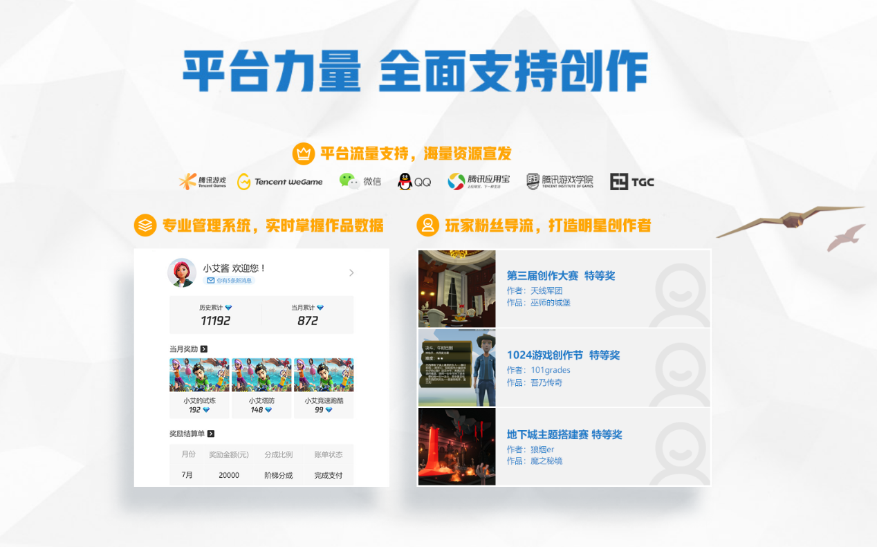 《艾兰岛》爱创计划1月9日全面开启! 作为原创游戏孵化器,《艾兰岛》致力于让每一个创意成真,让所有对创作感兴趣、有想法的人都能轻松、自由的在创作海洋中恣意驰骋。助力创造、点亮梦想!人人都能轻松拥有自己的原创游戏和其他数字作品。全面释放创造力,《艾兰岛》陪伴扶持创造每一步! 无论是热爱创作的你,还是热爱游戏、愿意贡献想法、和创作者共同成长的你,艾兰岛欢迎大家~ 场景搭建、游戏创作、视频等内容创作……艾兰岛广纳所有脑洞,零门槛快速实现你的创意! 点击查看爱创计划>>>(https://ylands.qq.com/cp/a20200108acjh/index.htm) 7天做游戏 风格无边界 - 上手快、创作快、无需代码编程 区别于其他繁琐及高门槛的游戏开发,《艾兰岛》支持积木式拼搭地图场景,图形拼搭UI,脚本编辑动画,图形化编写逻辑,可视化的游戏创作,AI/服务器多人原生支持。这些都大大降低了创作难度,无论是否有专业背景和能力,每个人都有可能成为创作者。 - 支持全品类、多视角 无论是策略塔防,竞技比赛,动作对抗,还是休闲娱乐,角色扮演,模拟经营…… 无论是第一/第三人称视角、2.5D视角、顶视角、还是横版滚轴、竖版滚走、静态视角等等, 《艾兰岛》都能支持,为创作者的构想全面赋能。 - 彰显个性、极致还原多样画风 不管是优美的自然风,宁静的田园,写实的工业场景,还是古朴的中式庭院,惊悚的氛围渲染,科幻的赛博朋克,各种你喜爱的画风《艾兰岛》全都hold得住。只要你想得到,没有做不到。通过内置编辑器的搭建能力及艾兰岛本身的高品质画面,既能精致还原各种实景,又能完美呈现你畅想的各类场景。 - 海量场景/功能组件素材,免费即下即用 - PC/移动/网页多端互通,随时随地创作无间 编辑器自带海量实体、创意工坊上提供各类逻辑或场景组件可直接使用,让你的创作效率极大提高。作品发布轻松快捷,让世界看到你! 丰厚收益 行业TOP分成 - 创作激励:每作品单次最高5w,单人无上限 【爱创收益视频插入】 - 多维赛事 :百万基金,全年覆盖 场景搭建、游戏主题赛、年度创作大赛,艾兰岛的丰富多维的赛事体系,一定有你展现自我的舞台,任你发挥脑洞,赢取各类丰厚赛事奖金! 【50天游戏创作挑战赛正在进行中】点击参与>>>(https://ylands.qq.com/cp/a20191225yxtzs/index.htm?atm_cl=ad&atm_pos=22380&e_code=501030) 【竞技场主题搭建赛正在进行中】点击参与>>>(https://ylands.qq.com/cp/a20191226jjs/index.htm?atm_cl=ad&atm_pos=22381&e_code=501031) - 收入分成:70%起、最高100%,行业TOP分成比例 为了激励肯定每一位创作者,当游戏产生收入时,你将享受到行业领先的分成机制,并且每月自动到账,省心无忧! 个性化服务 1对1全程陪伴 - 包教包会,从入门到精通,一站式课程免费学 没有专业能力及背景不用担心,除了艾兰岛编辑器的低门槛、上手快之外,我们也为所有准备了从零开始的各类课程,创作者教学中心拥有海量优质教学课程,致力于为创作者提供丰富、系统的课程和专业的教学服务,涵盖编辑器教学,搭建教学,游戏教学等多类课程。 - 创作鼓励师全程陪伴,提供技术/策划/美术专业建议 除了提供系统化的课程外,我们也随时在创作者的身边,会陪伴大家学习及创作的每一步,为大家提供更专业的建议和编辑器的各类解答,欢迎随时联系我们~ 创作爱好者们,欢迎入群咨询,群号:882999341,群名称:《艾兰岛》官方赛事群 官方创作沟通专员,QQ号:3062649124、613032、2442948103 平台力量 全面支持创作 - 平台流量支持,海量资源宣发 - 玩家粉丝导流,打造明星创作者 - 专业管理系统,实时掌握作品数据 《艾兰岛》扶持每一个创作者实现梦想、成就自我! 专属体验人团队,“共创人”招募火爆进行中 一款好玩的游戏一定会经过玩家的体验、反馈和优化迭代,有了用户的反馈才能让创作者的创意更夯实和落地,所以,除了创作者之外,我们也欢迎越来越多热爱游戏、敢于吐槽的“云创作”玩家加入我们,你们将和创作者一起做游戏、共同打造精品,只要你愿意将体验感受表达出来,甚至提出你的想法和建议,你就是我们要寻找的“共创人”,快来加入吧!点击立即成为共创人>>>(https://ylands.qq.com/cp/a20191223beta/index.htm) 你将能第一时间体验《艾兰岛》创作者们的最新作品,将真实的感受及建议告知给创作者,参与游戏的创作历程,见证每一款好游戏的诞生! 如果你还有视频等内容制作经验,就有机会与创作者组队,享受内容订制和平台资源宣发! “共创人”将获得优先参与新游体验,点券、Q币、周边等丰厚共创激励,与创作者零距离交流,专属荣誉称号,以共创人身份出现在游戏里等专属福利。还在等什么,快来加入吧~ 助力创造、点亮梦想!《艾兰岛》爱创计划,欢迎每一个有梦想、爱游戏的你! 马上了解“爱创计划”>>>> 值得一提的是《艾兰岛》手游也将在2020年发布,端手游数据互通的全新体验,随时随地创作及体验《艾兰岛》的原创游戏。 编辑:叶子猪小秘书