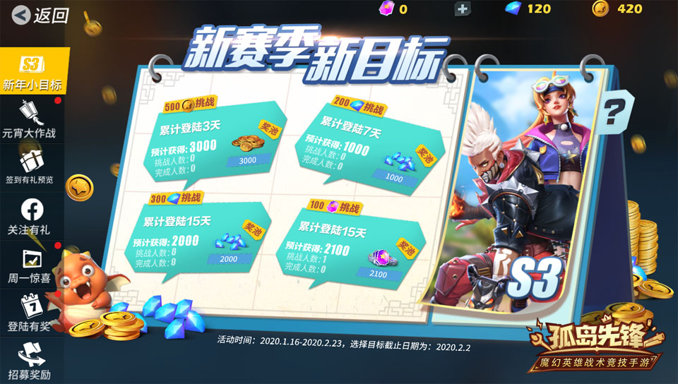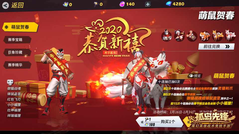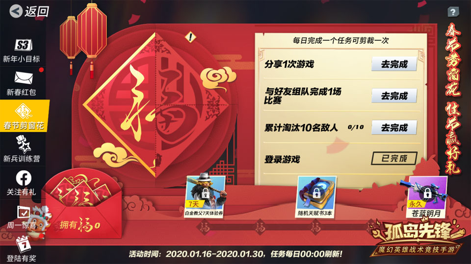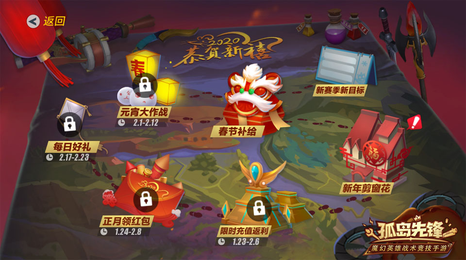 全新玩法惊喜上线,海量福利喜气盈门!网易首款魔幻多英雄战术竞技手游《孤岛先锋》1月16日迎来重磅版本更新,新英雄极恶双子凶萌亮相,新春海量福利季震撼来袭,更有全新玩法 “英雄之王”打造极致竞技体验,鼠年春节《孤岛先锋》陪你high爆全场! 最强对抗 英雄之王孤岛争霸 新年新赛季,新春新体验,此次重磅更新《孤岛先锋》推出全新模式“英雄之王”,将在每周二、四、六、日晚10:00-22:00限时开启。在新模式“英雄之王”中,玩家将面临更为激烈、更为紧凑的对决考验!受到特殊魔力影响,玩家在战斗中不能保持固定形态,将面对英雄自动变身、技能随机切换、无限复活等魔幻现象……英雄之王模式一反常规竞技,打造出魔幻世界才有的极限开黑体验! 在竞技过程中,玩家每淘汰1个对手可以获得1点积分,每获得2点积分时会自动变身下一个英雄,单局比赛中最多可以一次体验到8个不同英雄。每次英雄变化后生命值和护甲等级将略有降低,首个获得16点积分的玩家将成为本场的“英雄之王”,享受最高荣耀与奖励!英雄之王模式下玩家可以无限返场,战术策略大有可为,极限翻盘更刺激! 极恶双子完美搭档 重磅出击畅爽作战 童年遭遇巨变,被迫逃亡的彩香与父母送给自己的“武装看护熊”武丸相依为命,在被追杀中成长的她和武丸培养了极高的作战默契,并自创了许多战斗绝技与配合战术。他们以极恶双子的名义加盟洛德试炼,试图找到彩香父母的遇袭真相,展开复仇行动。 外表清纯可爱的少女彩香,专属武器却是令人恐惧的重型加特林炮“粉红之焰”。当她召唤武丸与自己并肩战斗时,武丸的重机枪与彩香的加特林将对敌人造成可怕的持续火力压制。当彩香发射电流飞弹时,被她锁定的敌人不仅要承担电流飞弹造成的伤害 ,还要做好承受武丸的暴风攻击的心理准备。 在防守方面,极恶双子可以展开减伤幅度极高的防御力场来吸收伤害,技能结束后还可以形成一个临时护盾并提升武丸的攻击速度。 与武丸形影不离的彩香,其实非常渴望友情与信任,在团队作战中彩香的“炸弹跳板”技能十分有用,它可以将人弹射到空中方便寻找新的战斗地形,并趁机击晕附近的敌人,取得更多主动。而“萌熊宝藏”不仅可以治疗拾取它的团队成员,同时还可以刷新所有技能的冷却时间,让英雄重回巅峰状态。 玩家可以通过参与“极恶双子嘉年华”活动获得彩香与武丸这对默契搭档,以及更多极恶双子的相关皮肤,包括外观“青梅竹马”,专属武器皮肤“牛奶加特林”等等。 剪窗花、集五福 大吉大利迎鼠年 临近新春佳节,《孤岛先锋》贺岁大礼陆续送到,本周更新后玩家可通过主界面的活动入口参与各项新春活动:日常任务集“福”字,宝箱开启抽外观,更有琳琅满目商城精品上新……丰厚“年货”满足你的视觉享受。 1月16日至1月30日,玩家完成每日任务即可获得“剪窗花”的机会,剪好窗花后将获得一个福字,收集足够福字即可领取七海霸主皮肤“白金教父”7天体验券、英雄天赋书等奖励,而集齐“五福”还可以获得带镜突击步枪史诗皮肤“苍蓝明月”。 【萌鼠贺春,鼠年专属“福狸”登场】 在鼠年限定补给狂欢潮中,玩家不仅可以感受最火爆的春节气氛,还能够欣赏猫鼠携手过年的奇观,黑暗斗士传奇皮肤“白猫斗士”与“御猫战魂”,暗影舞者传奇皮肤“锦鼠盗圣”与“萌鼠侠盗”,将传统文化的创意幻想与竞技开黑完美结合。 此外还有专属武器皮肤“灵猫利爪”,以及专属武器皮肤“红包飞刃”、“影鼠火铳”等外观上线,全面上演变装大戏。 人物武器之外,主人的得力助手坐骑自然也有专属的新春福利,传奇皮肤“狸”系列登场,“小小福狸”、“祥瑞福狸”、“灶神福狸”共同开启新年“福利”,“灶神福狸”还将入驻至臻典藏。 新赛季新目标 夺宝狂欢乐不停 浓厚的新春氛围中也不要忘记S3赛季本周正式开启!本周更新后赛季新功能“新年小目标”全新上线,玩家可以自由选择3个新赛季目标,完成目标中的各项任务即可在活动结束时获得对应奖励并平分奖池奖金。 而“夺宝狂欢”则为玩家打造另一种狂欢体验,玩家通过大厅界面“活动”标签下方点击参与,消耗一定的夺宝代币可以进行抽奖,不仅有机会获得点券、钻石、英雄能量、天赋书、金币等海量实用奖励,还有机会获得随机高级金色坐骑和金色英雄皮肤,新春佳节在即,快来试试你的手气吧! 网易首款魔幻多英雄战术竞技手游《孤岛先锋》新春惊喜风暴来袭,全新赛季全新玩法启动竞技热潮!1月16日更新后黑暗斗士开放限免,现在登录游戏官网,更多活动详情抢先了解,新春福利拿到手软! 关于《孤岛先锋》: 《孤岛先锋》 首创多英雄魔幻战术竞技玩法,六大首发英雄,技能自由搭配,隐身、突进、控制、伤害无所不能!全新魔幻世界,多种族地形植被;圣堂祈祷系统,装备助你火力全开;随身恐龙坐骑,一键召唤策马奔腾;双重复活机制,淘汰化身小萌龙,坚持就能原地复活!魔性趣味玩法,紧张刺激惊喜不断! 编辑:叶子猪小秘书