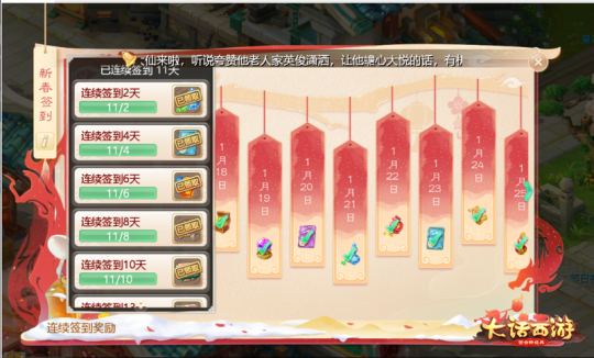 新春送吉祥,好运“鼠”于你!《大话西游》手游2020春节活动今日全服上线,大话精心为侠士们设计了一系列新春节日玩法。1月16日-2月9日期间,多重活动登场共迎新岁,海量经验、奖励、银两等你拿,连续签到还能得好礼!快和好兄弟们一起来大话手游里度过难忘的春节假期吧! 新年签到领好礼 每日福利不间断 欢度新春,福气降临,大话手游早已准备好了满满的新春好礼送给侠士们,让大家在正月里每一天都能满载而归!1月16日(廿二)-2月8日(十五)期间,玩家每日登陆游戏签到就能获取当日好礼,同时还可预知第二天签到能获得的奖励。连续签到达到相应的日期更有额外奖励可以领取,连续签到时间越长,能获得的奖励越棒哦!奖励不仅包括大量游戏道具和实物奖励,更有免费机票,快来签到试试自己的运气吧! 多重玩法齐上新 群仙贺岁乐不停 在1月16日-2月9日春节活动进行期间,天上的玉帝、众仙、财神爷都将降临三界,为玩家们带来各种趣味十足的节日玩法,同时送出海量的经验和奖励!“玉帝谜题”、“财神许愿”、“群仙贺岁”、“星君下凡”、“驱赶年兽”、“踏春出游”、“庆典烟花”、“新春游龙”、“幸运吉符”、“吉鼠闹春”等全新活动玩法陆续登场,等待大家前往游戏里体验! 1月16日-2月8日19:00之前玩家可以参与“玉帝谜题”活动,竞猜神仙们喜欢的数字。在2月8日19:40,玉帝将会揭晓谜底,猜中神仙喜欢的数字的玩家,将按各个奖项瓜分玉帝为大家准备的新年压岁钱! 除了玉帝之外,财神爷也给三界侠士们送来意想不到的惊喜。玩家参与“新年许愿”活动,在除夕前向财神的罐中存入金银元宝,在春节后即有机会收获多倍福利! 而在1月16日-1月30日期间进行的“群仙贺岁”活动中,众位仙家将与侠士一路同行,考验侠士一年来武艺是否精进。玩家可以收集请神符召唤神仙,对神仙进行培养和技能搭配。多位神仙组成组合之后,玩家即可与神仙共同进行PVP战斗或挑战财神爷设下的全新闯关副本,赢取海量经验及道具奖励啦! 新春佳节之际,“星君下凡”和“驱赶年兽”活动也将再度登场,1月25日-1月30日以及2月8日-2月9日服务器将额外刷新一倍地煞星,欢迎大家前往击杀;此外1月24日、2月8日-2月9日白天玩家能够组队参与驱赶年兽,成功驱赶就有机会获得获得经验、见闻录、特殊属性卡、1级宝石等丰富的道具奖励! △ 星君下凡 △ 驱赶年兽 少侠回乡过年,也不要忘了带召唤兽们出门玩耍一番,感受新春佳节的热闹气息。1月16日-1月30日参与“踏青出游”活动,玩家可以派遣召唤兽前往不同地点完成任务,获得各种惊喜奖励哦。 爆竹声声辞旧岁,烟花朵朵贺新年!“庆典烟花”活动将在1月16日-2月8日喜庆登场,玩家每天燃放烟花迎接新春就可获得奖励,一天最多获得三次奖励。完成踏春出游活动即可获得烟花,大家也可以前往长安桥头NPC:贺嫣处进行购买哦! 此外,少侠们也可以在大年初一领取龙形变身道具,根据“新春游龙”活动要求和队友们组成游龙,不但走动时将会有特殊效果,在北俱芦洲任务中还能提升150%经验! 新年想要行大运的侠士们,千万不要错过“幸运吉符”玩法啦!侠士们在游戏中收集行运符碎片就可以合成“新年行运符”,或者兑换各种好礼。凭借“新年行运符”可以追踪鸡驴大神当前的位置,如果运气爆棚遇上鸡驴大神,还有能机会得到神兽、特殊召唤兽等价值非凡的奖励喔! 除了以上活动之外,1月24日当天吉鼠还将带着满仓的礼物来献宝!在1月24日12点、18点、20点、21点、22点全服红包惊喜掉落,侠士们记得动手抢大奖哦! 鼠年霓裳焕新颜 新春优惠大放价 财运双全,衣锦还乡,在新春佳节里,除了趣味十足的活动玩法,大话手游同样为侠士们准备了琳琅满目的年货和超值商品,等待大家前来选购! 侠士们可以订购【鎏金福运卡】,购买成功后每天即可获得银两、师贡、宝石等奖励,补足尾款或直接付清全款更能在除夕-元宵节期间领取每日一次的奖励!值得一提的是,1月22日(廿八)-1月23日(廿九)预购可享9折优惠,预购时支付30仙玉,1月24日(除夕)支付剩余的240仙玉即可享受所有福利哦! 另外,在1月25日(初一)-1月30日(初六),2月8日(元宵)甄不亏新年特价开启,全场统统大打折,最高折扣低至1折,错过这次再等一年! 《大话西游》手游还为各位侠士们备好了特色年货,回馈大家一年来的支持,1月25日-1月30日期间,等级达到35级的玩家都有可能被新春福星选中,可以购买超值年货!全新鼠年家具将在年货中限量出售,千万不要错过添置宝贝的时机! 除此以外,全新鼠年新装也将正式上架,1月21日-2月6日期间,2020新春时装限时出售,萌趣猫鼠主题的开运新装,换上它定能让侠士们容光焕发,在新的一年里好运连连!新时装售价3580仙玉,喜欢的侠士们请尽早下手,不要错过购买时机哦! 金鼠纳福,岁岁常新!大话手游2020新春活动今日起在全服正式上线,十二重活动接连登场,春节期间福利不断,等待侠士们前来参与!海量经验、银两、奖励大放送,活动期间连续签到更有惊喜奖励,更多春节活动详情请前往节日专题页面查看,精彩无限,不容错过!更多游戏、赛事信息,请关注《大话西游》手游官网、官方论坛、官方大神。 编辑:叶子猪小秘书