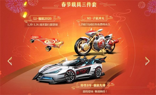 喜气洋洋迎新年,飞车送你新福利~为了迎接即将到来的鼠年,QQ飞车手游准备了一大波超级惊喜,等待车手们签收!五喷A车S-擎天雷诺工坊登场,冠军皮肤同步上架,鼠年春节限定载具全民放送,还有极品套装登录领取,一起来拉开新春福利的序幕吧! 【S-擎天雷诺震撼登场】 重磅新年巨献中,S-擎天雷诺必须占据C位。S联赛秋季赛时,S-擎天雷诺初次亮相,职业选手们驾驶着它征服每一个弯道,丝滑的手感和霸气的车身令人心动。终于,它来了,它带着冠军皮肤走来了!1月24日,S-擎天雷诺加入钻石工坊,车手们可以使用橙光能源进行打造,打造完成就能将5喷A车S-擎天雷诺开回家啦~ S-擎天雷诺的冠军皮肤也将于1月24日上架商城,车手们可以使用钻石购买。这是首款S联赛冠军皮肤,银、黑的配色与RSG的队服设计相近,宽大的车型也与虎狼之师的霸气相符,赛车侧边位置还印有RSG的队标,极具收藏意义。 【万辆永久A车天!天!送!】 辞旧迎新好礼多,万辆A车天天送!新年活动期间,还会有上万名幸运车手获得永久A车好礼~1月20日至2月10日期间,车手们完成指定任务即可获得金鼠道具,集齐后就能免费抢晶耀之星、火神、时空之翼等极品A车!活动期间抽奖次数不限,超过20万辆永久A免费送!赶快进入游戏,收集小金鼠带走永久A ~ 【超能橘喵萌动上新】 超能橘喵随时准备与车手们一同奔赴赛场~1月29日起,A车超能橘喵上线点券工坊。胖胖的橘猫造型萌动可爱,粉嫩嫩的猫爪戳中萌点,两边还有小仓鼠助阵,新的一年,还怕抓不住你的鼠年幸运吗? 【B车乘风破浪而来,新春载具酷炫亮相】 B车乘风也将在新年登场。1月17日起,车手们完成任务就能免费获得永久B车-乘风。新的一年,一起乘风破浪,告别水逆! QQ飞车手游还准备了春节载具,为新年增添喜气!1月20日至26日,车手们完成累登即可在周末银行领取L1滑板-福鼠2020。1月29日起,完成指定任务就能获得永久M1摩托-子鼠冲天,要记得来领取春节载具,一起开新车走花路呀! 【小飞鼠灵动来袭】 鼠年限定宠物了解一下?2月8日至11日,车手们完成任务,就能将永久鼠年限定宠物小飞鼠带回家!可爱的小飞鼠身穿明黄色飞行服,刻着2020字样的飞机也已就绪,准备随时划破长空。机长小飞鼠已经待命,赶快进入QQ飞车手游,和小飞鼠一起迎接新春吧! 【极品套装累登领取】 新年穿新衣,春花秋月系列套装和配饰等你领!1月24日起,车手们登录游戏即可领取春花秋月套装和系列配饰。男款兼具传统与时尚,女款清新中带着一丝温婉,穿上这款套装,过年走亲戚都倍有面儿~ 永久福利已经备好,新春活动即将开启!赶快进入QQ飞车手游,带走海量新年好礼,迎接鼠年鸿运~ 编辑:叶子猪小秘书