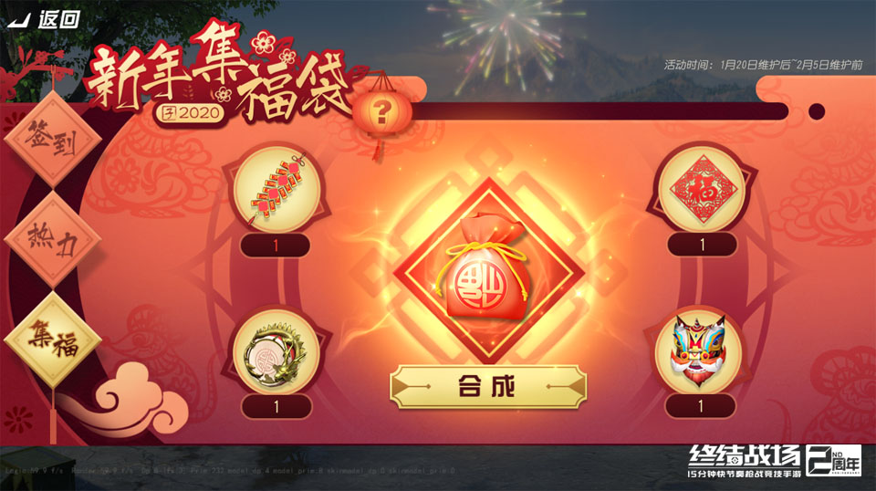 贺新春、集百福,层层惊喜收不停!网易快节奏开黑枪战竞技手游《终结战场》1月20日春节重磅更新,参与新春热力活动就有机会赢取春节限定超跑华影EX!全新S12赛季携手新春专属福利联袂登场,海量特训精品奖励倾情放送,更有多重神秘惊喜,1月20日至2月4日连续解锁!全新模式“英雄寻宝”正式上线,全新英雄幻影骑士前来助力,陪伴玩家度过最嗨春节长假,享受超刺激竞技体验! 鸿运当头 新春处处福满地 在1月31日前,玩家每日登陆都可参加新春签到活动,签到后可以根据已签到天数领取对应奖励。累计签到3天还可获赠动作:“放礼花—男”,累计签到6天则可获赠“放礼花—女”,为春节点燃最美烟火。而累计签到7天,则可获赠永久男性外观“熊猫”,体验当国宝的乐趣。需要注意的是,春节签到活动无法补签,要坚持签到才能将国宝外观收入囊中! 新春期间,《终结战场》面向全体玩家开启热力任务,玩家通过完成活跃任务和补给任务获得热力值,当全服热力值达到一定数值后即可解锁礼包。当全服热力值达到最高档时,可解锁永久越野车皮肤“鸿运当头”,兑换全服奖励需要消耗一定自身热力。 玩家个人热力还可以参与全服排行榜排名,名列前茅的玩家将有机会获得限定奖励。当玩家个人热力值达到23000时,还将获得春节限定随身版华影EX大奖! 春节活动期间,玩家还可以拾取或通过开黑获得集福卡道具,每集齐一套四件集福卡道具可合成一个新年福袋红包。好友间可以互相赠送集福卡道具,邀请朋友一起参加合成效率将大大提高,而成功赠送道具给好友还可以直接获得一个红包,朋友越多福气越多。 凭实力征服战场 新赛季一起释放“狼性” 在《终结战场》上,每个赛季都是一场专属狂欢,丰厚的奖励与激烈的竞技体验,诞生了一批又一批的吃鸡王者。本周维护后全新S12季正式开启,专属绝版时装“红狼”霸气引领交战气氛,让竞技来得更激烈一些! 每赛季必备的英雄嘉奖令这一次也带来了海量超值惊喜,金币、彩钻、重制芯片等实用道具期待你的解锁,更有专属高级外观奖励,让你的战场风采更加突出! 外观风格百花齐放,既有可爱迷人的“梦幻美少女”,也有冷酷帅气的“街头暴走男”,有轻松休闲提运动风,也有防护完全的重装球员系,更有无敌搞怪的“香蕉芭乐侠”和近战武器“香蕉”。 至尊“华影” 春节限定补给视觉冲击 本次更新后,超豪华春节限定补给将于1月20日维护后至2月5日维护前限时开放,抽取即有机会获得新春限定跑车外观“飞驰华影-I”、伴飞滑翔翼“玉麟”、“子夜魅影”以及“子夜华裳”套装。 团圆在即,“飞驰华影”为每位归心似箭的玩家送上旅途通达的祝福,让快节奏的酣畅延伸到三次元。 当抽取春节限定补给达到一定次数,玩家还可以通过领取方式获得以上奖励。 春节期间,《终结战场》还将不断为玩家解锁全新绝美外观,1月22日,枪械皮肤“天罚”与“神威”霸气上线,集齐最高级皮肤后还可获得超酷时装。 1月29日,浪漫樱花与神秘艺伎的组合,为《终结战场》带来别样的东洋风情。 而当你离开跑车时,还有机会改乘“迅猛龙”体会一下在侏罗纪吃鸡的惊险刺激! 新春佳节福惠双全,1月20日至2月4日,《终结战场》层层惊喜连续解锁,鼠年海量福利恭贺新春!本周限免英雄阵容更换为终结猎手、极限车手、灵鸦侍者和永生伯爵,陪你一起嗨爆春节! 关于《终结战场》 英雄归来,终结战场!2周年全新英雄模式刺激开战!彗星巨炮、特工潜行,召唤空投,任选秘宝,给你超酷超燃的对决体验!春节活动多重惊喜齐发,极致畅爽体验! 编辑:叶子猪小秘书