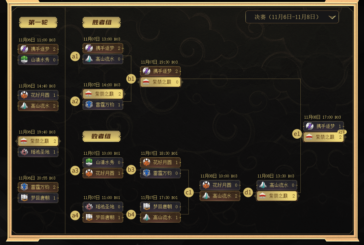 《梦幻西游》手游首届武神坛巅峰赛于11月8号在广州·天河体育馆圆满落幕。本次巅峰赛通过高水平的赛事制作呈现、精细化的赛事数据中台、联盟化赛事组织运作、战队俱乐部化运营、赛事生态经营、丰富的赛事衍生节目内容等在不同程度上把这项赛事推向高潮,这是网易对于自身MMO品类优势的进一步拓展,同时也是对MMO职业电竞生态的一步成功探索。 武神坛巅峰赛冠军诞生:紫禁之巅登上广州地标“小蛮腰” 本次巅峰赛的冠军不仅可以获得50万的丰厚奖金,还将登顶“小蛮腰”展示冠军风采。这也使得来自四面八方的豪杰们当仁不让。经过三天激烈的角逐,“紫禁之巅”战队最终2:1击败“携手逐梦”战队,夺得冠军。同时,武神坛巅峰赛冠军的名字也登上了广州地标“小蛮腰”, “紫禁之巅”名响天际。 逆风前行!巅峰之战演绎冠军传奇故事 决赛之前,各方选手、媒体平台普遍看好网易大神巅峰人气战队——携手逐梦。但是,紫禁之巅告诉我们,冠军不是吹出来的!只有逆流而上、逆风前行,才能拥有力克强敌的本领,才能拿下巅峰之战的冠军。 在11月7日的比赛中,紫禁城之巅险胜了雷霆万钧之后与携手逐梦相遇,但此时的他们显然不是携手逐梦的对手。经过一番激烈的比拼后,紫禁之巅被2:0横扫,进入败者组角逐之中。 11月8日,在败者组战胜强敌高山流水的紫禁之巅再次回到了决赛舞台。决赛舞台的他们,凭借默契的团队配合、丰富的战术储备和敢打敢拼的电竞精神,在整个BO3的对决中全面压制了携手逐梦。 在决赛BO1中,紫禁之巅凭借自己的隐藏大招,以及完美团队配合仅用11回合就平推了携手逐梦,拿下了关键的决赛首胜。在BO2中携手逐梦背负着巨大的压力,与紫禁之巅打得有来有回,最终在决胜时候,以超强的团队配合,成功绝杀紫禁之巅,扳回一城。到了BO3的时候,双方更是展现了超强的战斗意志,在进攻与防守中相互切换,细节已经达到了极致,最终在决胜时刻,紫禁之巅还是技胜一筹,成功带走携手逐梦。 从败者组到决赛,从决赛到冠军,或许,这就是紫禁之巅的冠军实力吧。 紫禁之巅分享胜利喜悦:团队最重要的是凝聚力 拿下冠军之后的紫禁之巅接受了我们的采访。在采访中,紫禁之巅的选手均十分兴奋,主指挥小侠则表示,他可以喜提奥迪A6了。 小侠说,紫禁之巅战队其实是一支很有爱、很和气的团队,因为他们是先成为朋友,再成为队友的,比如杰哥就是通过线下聚会认识的队友,在经过一番深入的交流后,果断加盟团队,并拿到了冠军的好成绩。 小侠还表示当前形势下并没有一个广义上的最强阵容,阵容和打法是要根据自身硬件来看的,在自己硬件范围内,不断推陈出新、创新打法和战术才是他做的事情。就比如在BO1与携手逐梦的对决中,他们最后采用了魔王这个门派,目的就是让携手逐梦无法预料,难以招架。 最后,小侠还盛赞了对手“携手逐梦”,认为他们的防守真的是滴水不漏,特别是BO2对决中化生寺的关键法宝纸人,令他们的点杀化为泡影不说,对方还实现了绝地翻盘,着实是一支强劲的对手。紫禁之巅的幕后老板则表示,这一届的小侠真的太强了,希望他们能在本月的武神坛中继续加油,小侠也表示一定会好好准备,争取再夺一冠! 随着冠军采访仪式结束,《梦幻西游》手游武神坛首届巅峰赛也落下了帷幕,但这次巅峰赛所带来的革新不仅在组织、赛制、制作上多元突破,不仅满足了不同玩家的内容需求,还提升了赛事生态本身的稳定性、认同感,也为MMO职业赛事提供了破局思路。相信在未来的路上,《梦幻西游》手游武神坛巅峰赛将越办越好,越走越远。 编辑:月光下完美