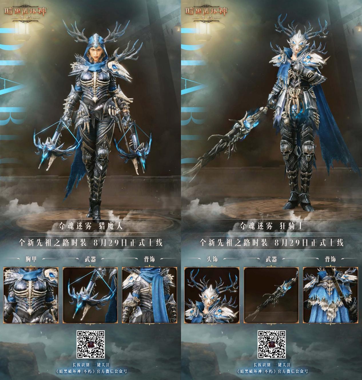 月光熹微,迷雾笼罩。新的力量降临庇护之地,强大的魔皇孕育而生,撕裂的灵魂发出震耳欲聋的怒吼,迪亚波罗的入侵也即将到来。在这危急关头,黑雾笼罩战场,幽蓝的灵火若隐若现。勇者们身穿铠甲,头戴散发微光的鹿角,从浓郁的黑雾之中缓缓走出,向肆虐庇护之地的恶魔发起挑战!在全新时装的加持下勇者们引动黑暗中的神秘力量,让它为自己所用,往来于迷雾之中收割敌人的灵魂,将邪恶彻底肃清!