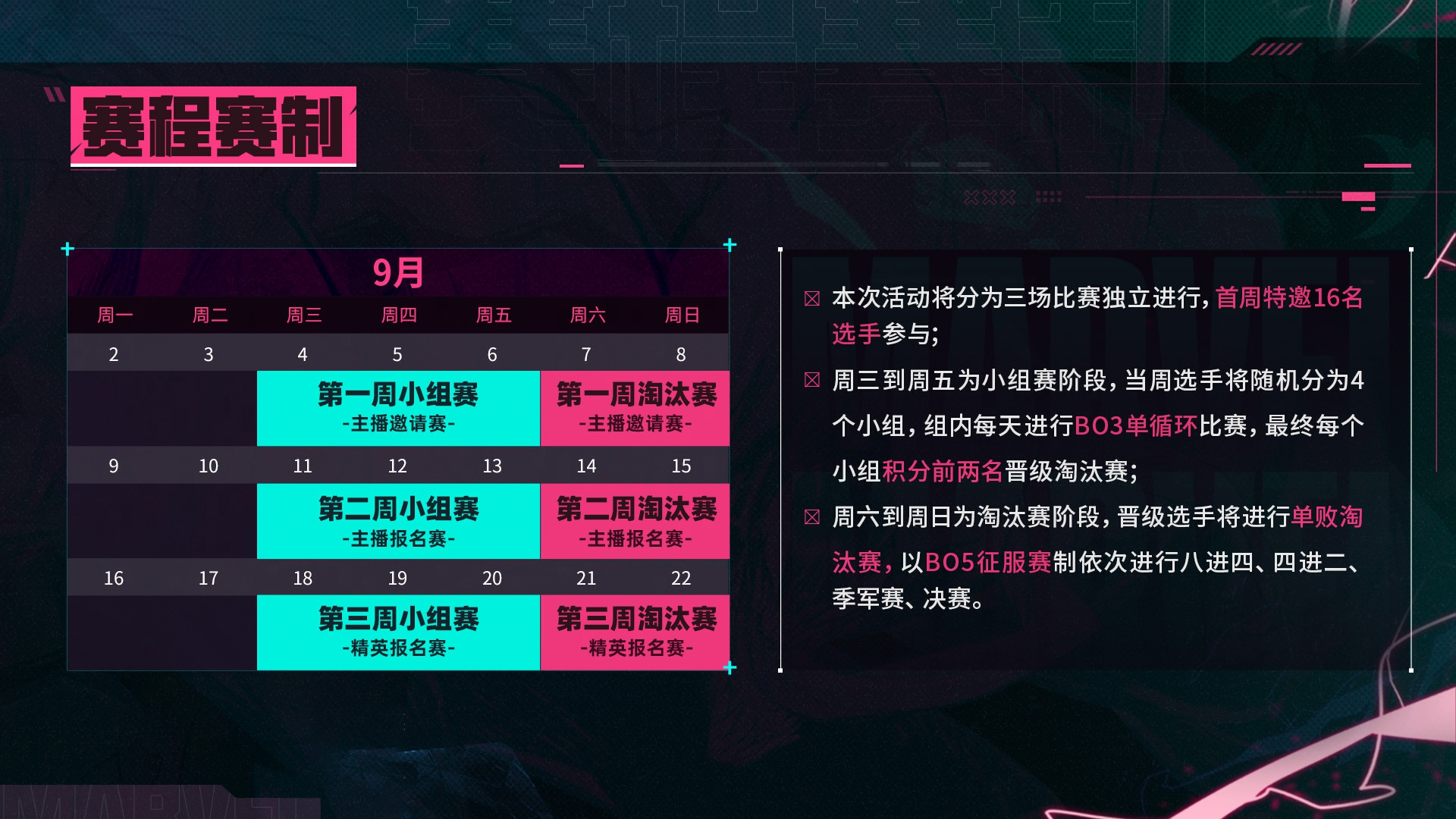 赛程安排方面,小组赛将于本周三至周五进行,16位主播将被随机分为4个小组,每组进行BO3单循环赛。各位探员可以前往喜欢的主播直播间观看小组赛的激烈对决。周六和周日则是更加扣人心弦的淘汰赛阶段,采用BO5征服赛制,将进行八进四、四进二、季军赛和最终的冠军争夺战。官方将全程直播淘汰赛阶段,欢迎各位探员锁定《漫威终极逆转》Bilibili和抖音官方直播间,领略下一代战术竞技卡牌的超高博弈性。参与弹幕互动还有机会获得稀有变体好礼!