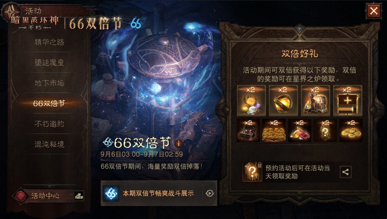 双倍好运再度降临,传奇宝石惊喜延续!作为66双倍节最受人关注的一环,传奇宝石双倍权益依旧继续!9月6日3:00至9月7日2:59,玩家登录《暗黑破坏神:不朽》,前往不朽秘境,即可自由选择一次传奇宝石双倍掉落的机会。选择传奇宝石双倍掉落后,玩家通关不朽秘境即可额外获得种类相同、星级随机的绑定传奇宝石。双倍时间有限,错过再等一个月,是时候拿出你的强化不朽钥石了,用一次通关换双倍惊喜!