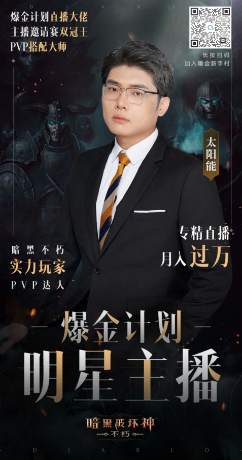 创作不停,爆金不止!《暗黑破坏神:不朽》爆金计划第七期正火热进行中,想像太阳能一样月入过万,成为爆金明星?那就赶紧加入进来,用你过硬的游戏理解和充满创意的想法,创作出独具个人风格的作品,斩获流量与奖励!如果你是萌新作者,也完全不用担心,扫描下方二维码加入创作群,即可得到团长的帮扶指导,掌握创作技巧。同时,创作群中还会有资深作者不定期分享经验和干货内容,帮助你快速成长。只要用心学习,相信下一个月入过万的创作者就是你!