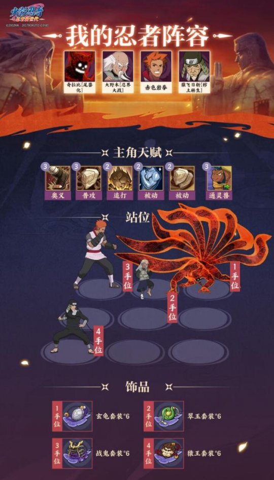 (4)忍联普攻队:奇拉比[尾兽化]+大野木[忍界大战]+赤色岩拳+猿飞日斩[秽土转生]