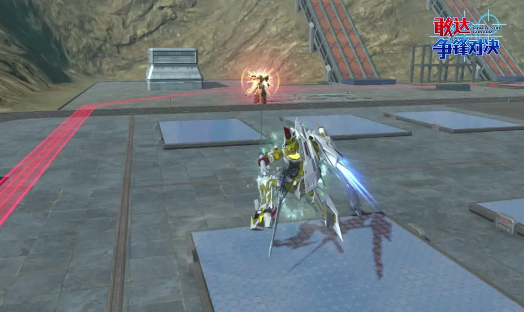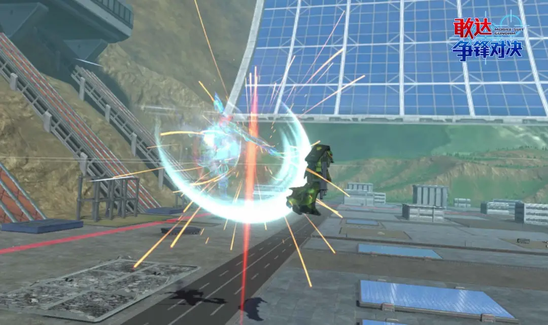 按下射击键。使用攻盾系统进行光束攻击,命中时击退目标。