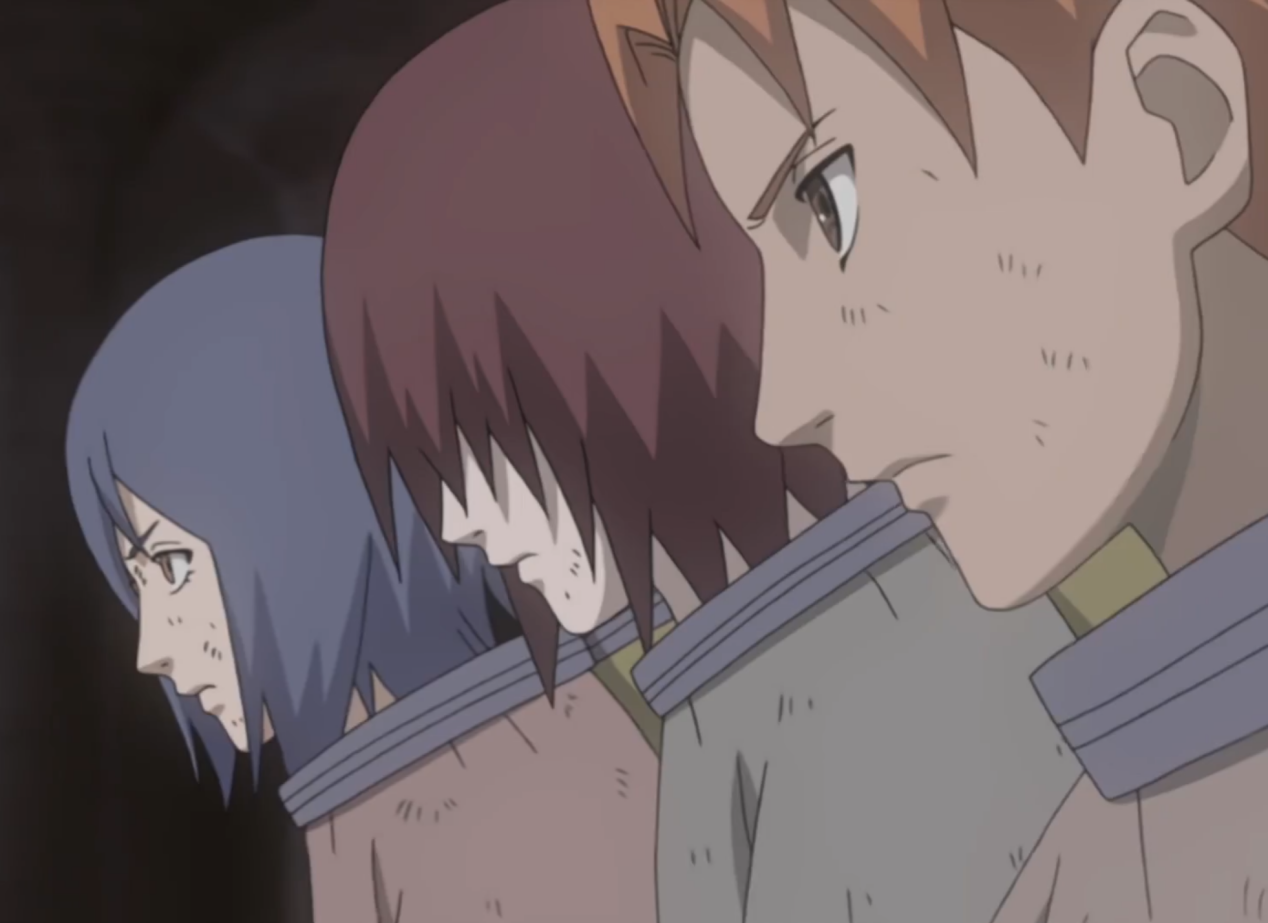 当时沦为三大国主战场的雨隐村战乱不断。某一天,三人发现在不远处雨忍村的首领山椒鱼半藏正与三位木叶忍者交战。
