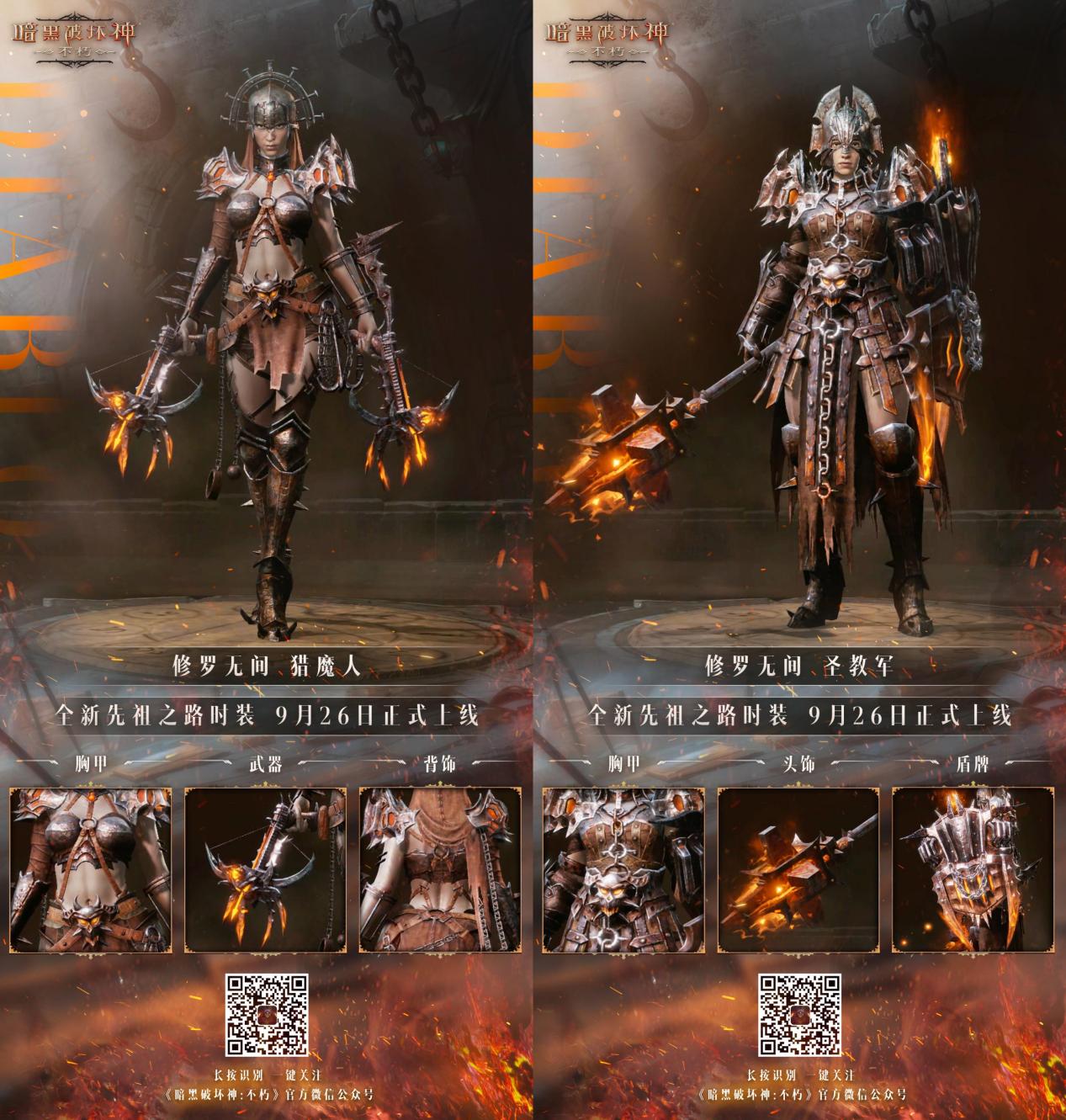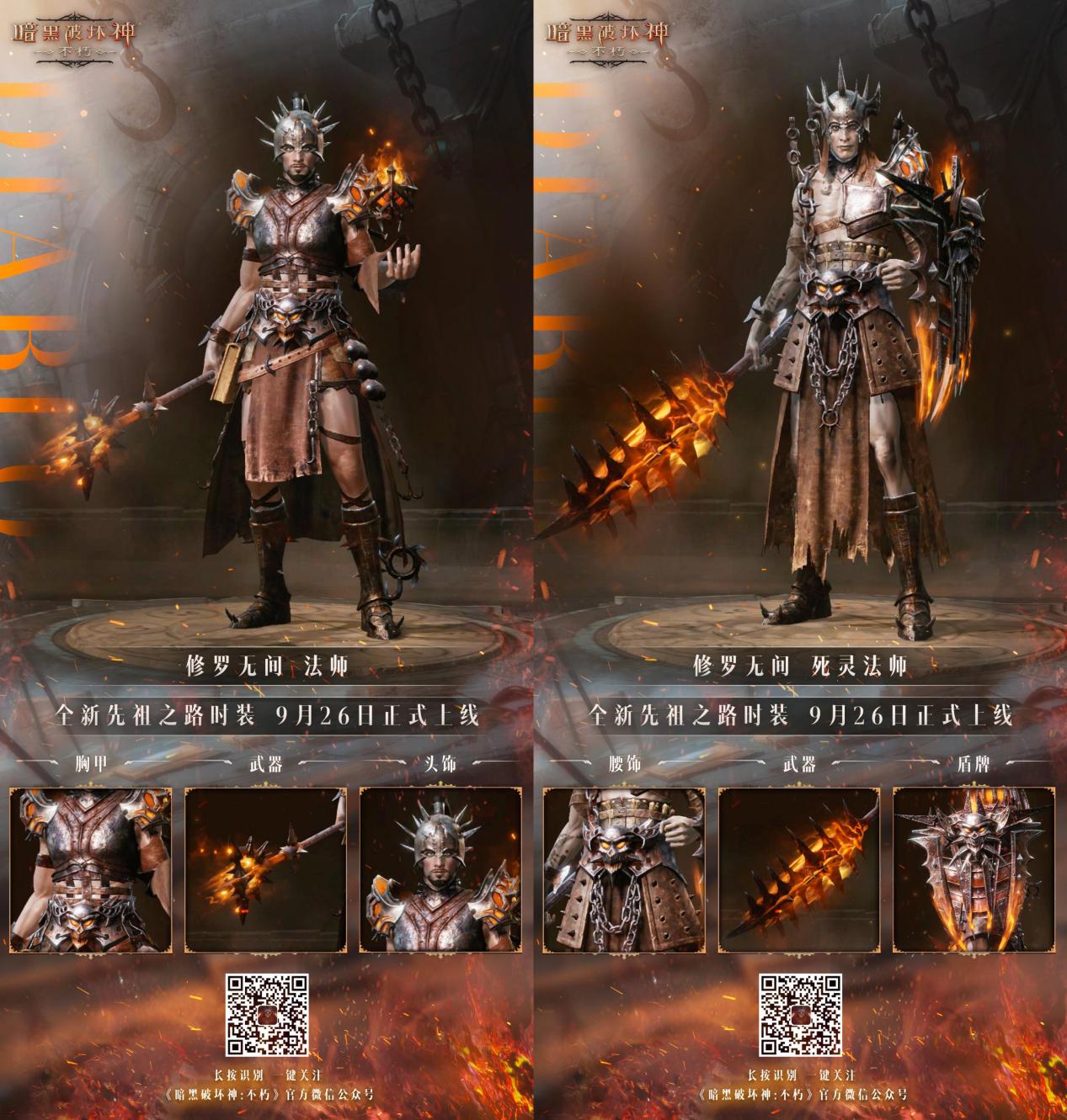 修罗无间,释放怒火!新的轮回启动,《暗黑破坏神:不朽》全新先祖之路时装【修罗无间】今日破魔登场。深渊下的熔浆炼狱近日频频发生异动,当先祖之路再次开启轮回,沉睡的远古战神们将重回战火不休的庇护之地!秉承着先祖的意志,八大职业穿上全新先祖时装【修罗无间】,挣脱魂链束缚,携手共进退,誓以手中的修罗之力,唤起地狱烈焰,焚尽搅乱和平的恶魔!
