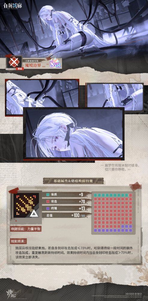 除了新同调者缇诗之外,炉·心版本还上线了诸多新内容、玩法。其中定向潜航迎来新“成员”——全新SSR记忆烙痕「魇境边界(攻击)」,活动期间该烙痕的潜航成功概率限时提升。在本期UP结束后,「魇境边界(攻击)」将会进入「寻迹潜航·记忆回声」。