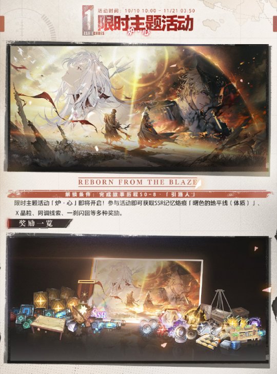 限时主题活动「炉·心」也在此次更新后拉开了帷幕,参与活动即可获取SSR记忆烙痕「曙色的地平线(体质)」、X晶粒、同调线索、一刹闪回等众多奖励。配合活动的开展,游戏还同时新增了永昼之庭、恩古拉两张地图,还有专属的活动关卡、「战神莎拉塔尔」、「战神迦路」以及波纹电磁发生器在内的一系列全新玩法,进一步丰富监督的游戏体验。
