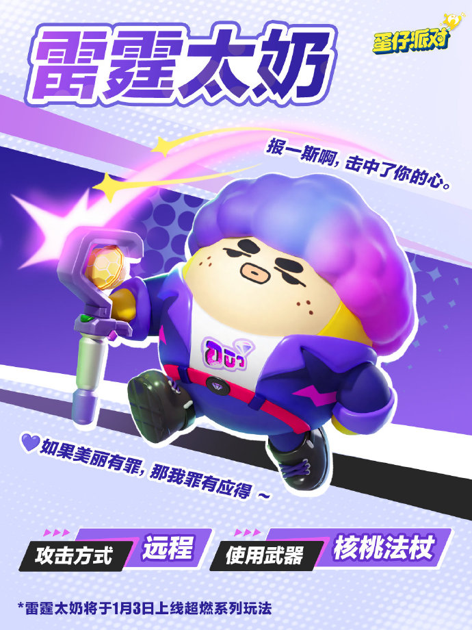 竞技风云变幻,如今加入全新变数!1月3日,国民原创乐园游戏《蛋仔派对》上线全新超燃蛋仔雷霆太奶和僵尸博士,等蛋体验!