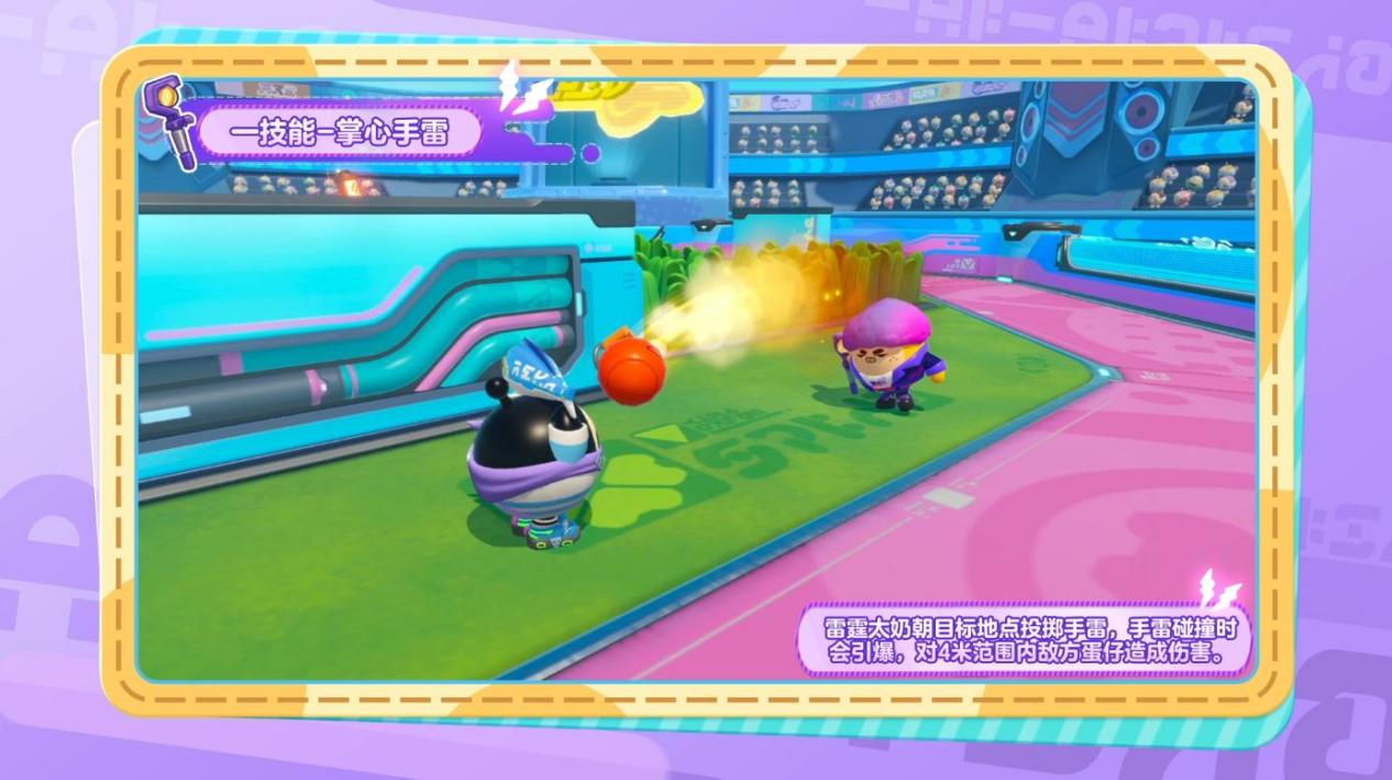 施展一技能“掌心手雷”时,雷霆太奶朝目标地点投掷手雷,手雷碰撞时会引爆,对4米范围内敌方蛋仔造成伤害。
