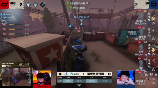 第三天,北京WBG vs 成都GG第二局下半场,GG_Qiu歌剧演员开局追击WBG_koting园丁,待短暂博弈护盾被打掉后,园丁坐过山车抵达二站,此处有WBG求生队伍的小巧思:打高移速屠夫不点灯二站的灯,因为特意去点还会亏电机进度,但GG_Qiu思维定势认为园丁会直接到三站,对于求生者来说监管去三站属于意外收获,白白给求生者让了三个半台的密码机进度。GG_Qiu只好就近进行追击WBG_Persica气象学家,WBG_Persica极限层云起飞,然后走空地让歌剧演员不能影跃,接着进行强风干扰,GG_Qiu为抢节奏闪现将其击倒。WBG_Guoker哭泣小丑前来救援,看准歌剧演员出刀,进行加速规避伤害并贴近狂欢之椅,无伤将人救下,WBG_Persica靠着对道具和监管者攻击距离的精准把控,谨慎释放强风,大大提升了自己牵制的空间,最后靠佣兵救下人后的化险为夷将密码机拖好,四人全在终点站半场,WBG_Persica抗住压力飞轮折掉一刀然后翻板牵制将破译终点站大门的时间拖出,最后三跑拿下胜利。