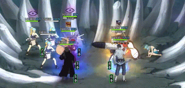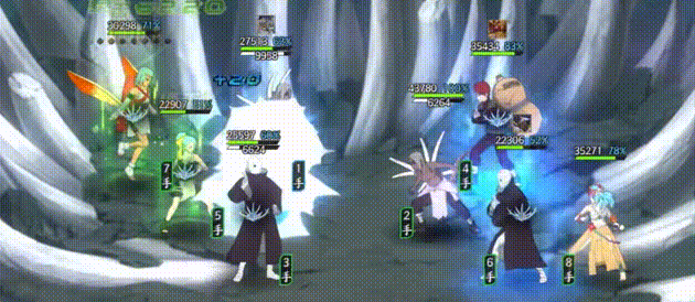 3、我方圈圈脸使用奥义,造成伤害,对方部分忍者无法回复查克拉;