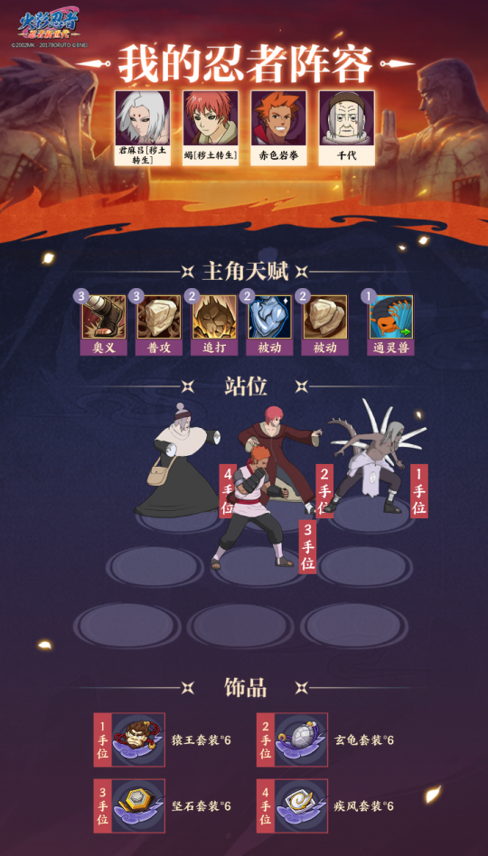 2、君麻吕[秽土转生]+蝎[秽土转生]+千代+赤色岩拳