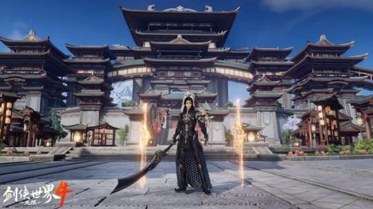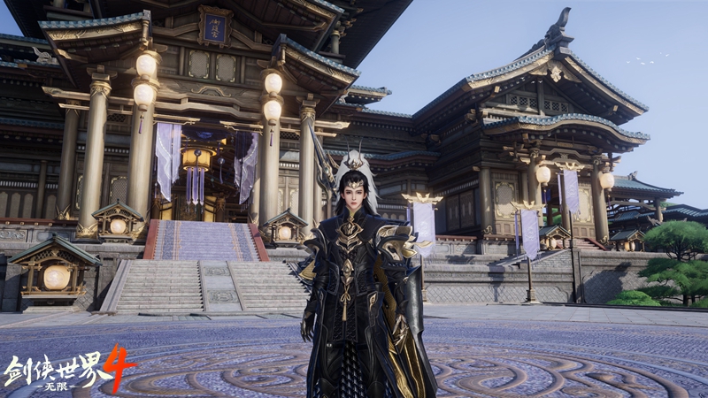 凭借《剑侠世界4:无限》先进的渲染技术,这套战甲在细节处鲜活起来——暗金质感与龙鳞肌理分明,战斗时甲片碰撞铿锵,枪缨随风而动,将甲胄文化与门派的尚武豪情展现得淋漓尽致。