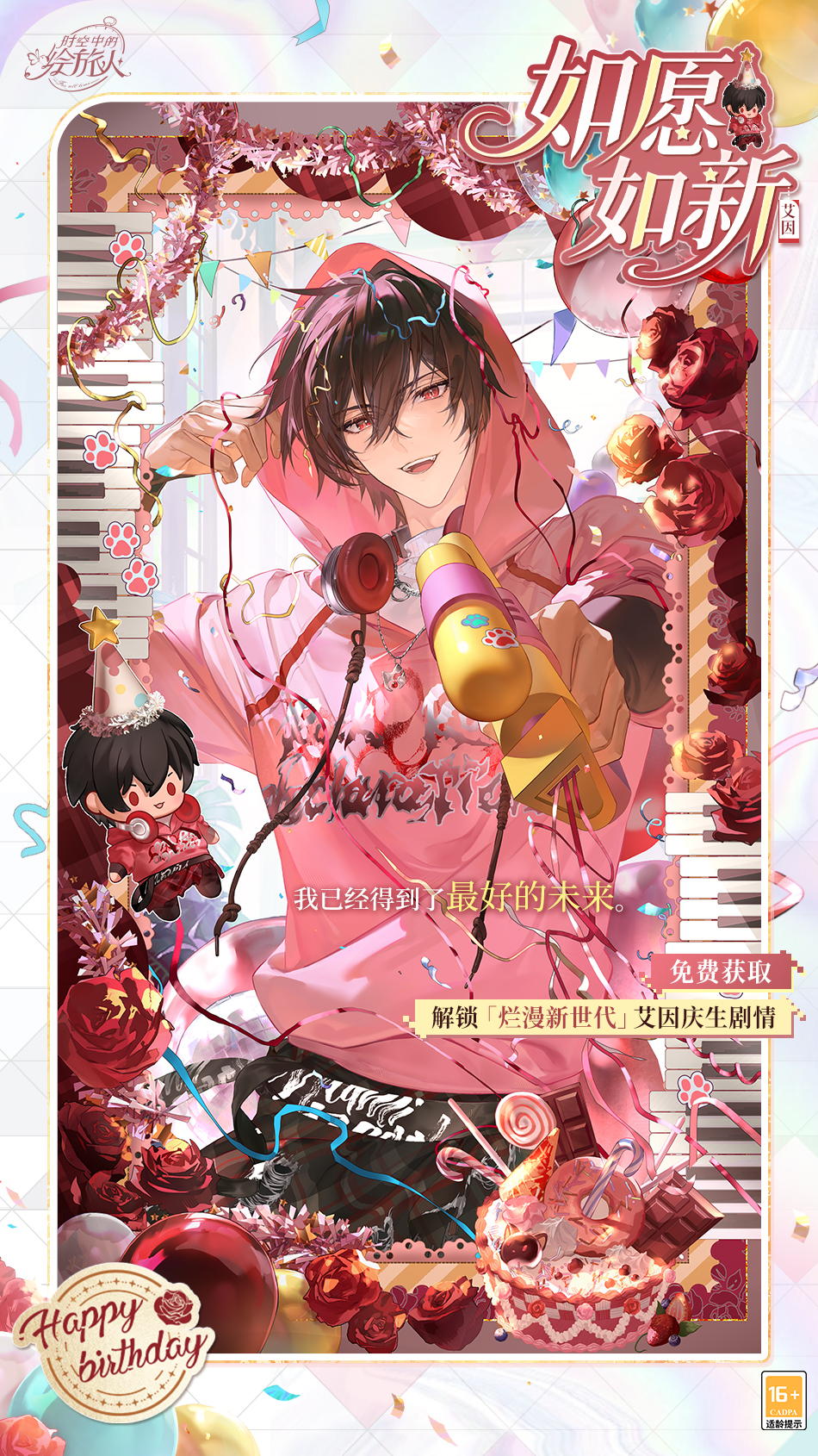 11月17日09:30 - 11月26日05:00,参与艾因生日活动「烂漫新世代」,在生日当天与他共度,完成剧情即可免费获得1张生日纪念画灵[如愿如新]。