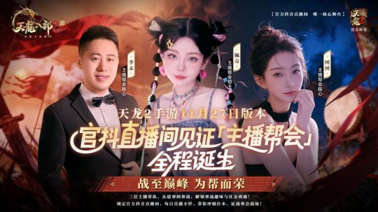 随着“巅峰争霸”资料片的到来,天龙江湖也为大侠们准备了全新的“主播帮会成长直播计划”!11月27日 - 12月4日锁定“天龙八部2手游”抖音直播间,带你见证六日帮战全程!每日直播不停,带你冲级打本、征战帮会战场!