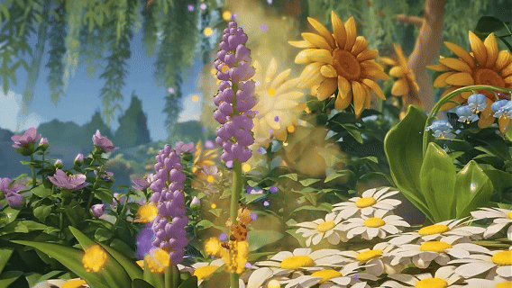 在这里,你可以踏上踩踩菊,蹦一蹦就会获得花蕊中的花蜜;你也可以抱住巨大的薰衣草花茎摇晃,收藏甜甜的花香;也可以掏出你的“天气瓶”,对准穿过花瓣缝隙的一缕阳光,轻轻一盖——你就拥有了一瓶阳光。这里的一切收集都不是为了完成任务,而是享受采集探索的过程。让原本枯燥乏味的收集材料,变成随心而动的“收集美好”。