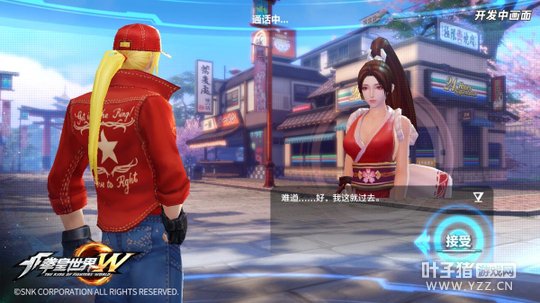 不知火舞来电求助 在现实中,酒吧一直是帅哥美女的聚集地,在《拳皇世界》中也不例外,玩家可以随时进入酒吧,进行K歌、跳舞、撩妹等娱乐活动。据说,游戏中80%的情侣都是从酒吧的第一次对饮开始的哦。