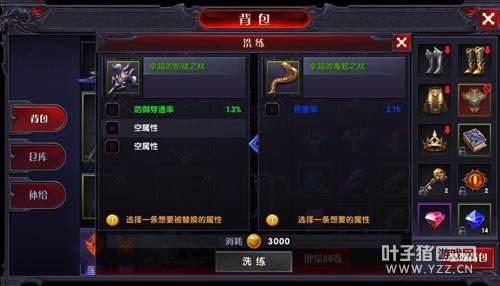 系统会默认装备中的武器来进行洗炼,选择我们想要的一条属性,然后选择准备被替换的当前装备属性,点击洗炼即可!