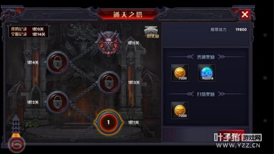 通天之塔,首次通关获得大量经验,每天必爬能打多少层就打多少层。