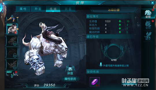 炼魂 玩家可以在该界面查看炼魂属性或者对宠物进行炼魂操作。炼魂消耗坐骑炼魂石,每次消耗一个,提升一级。升星可以提高炼魂等级。