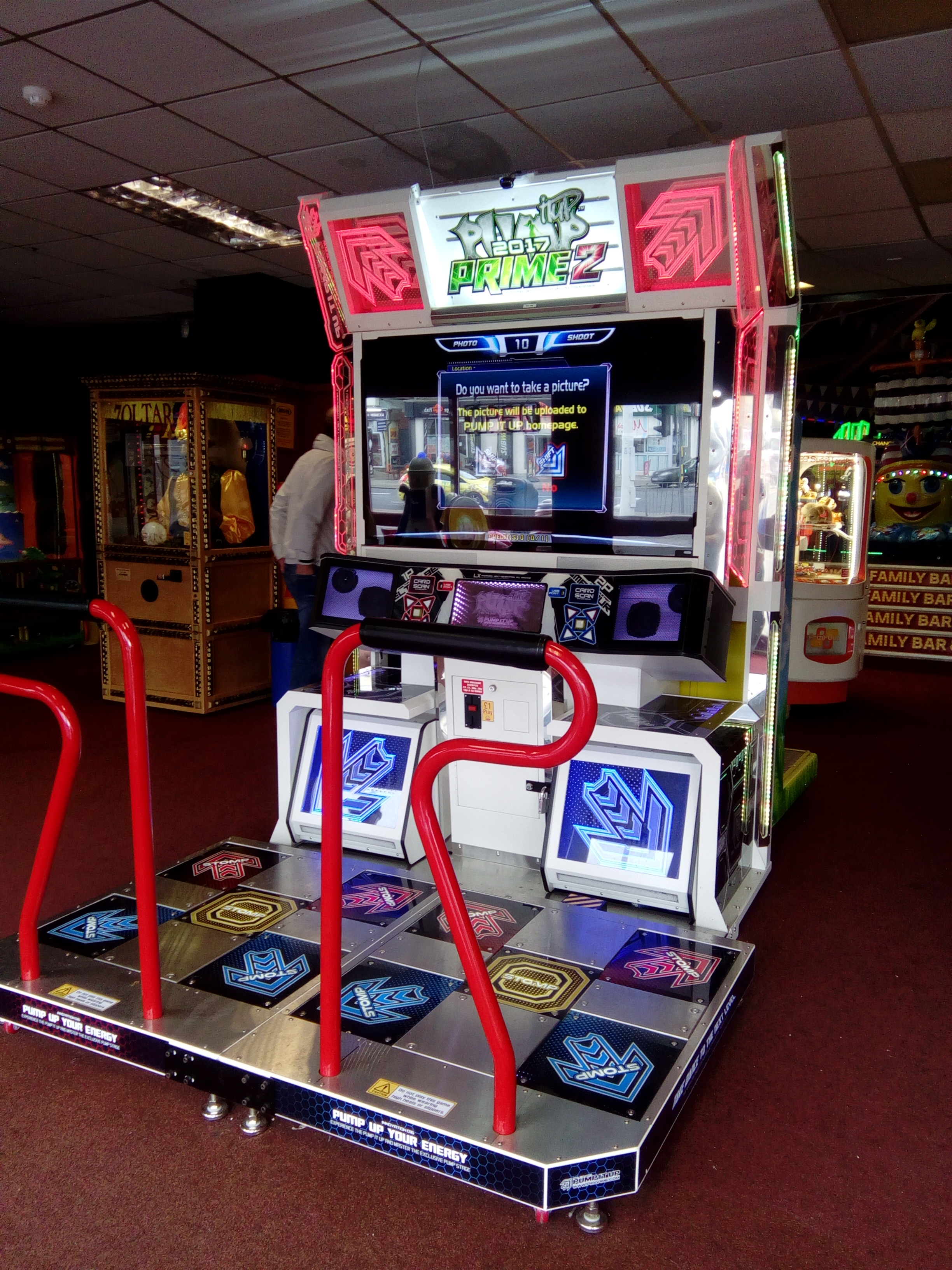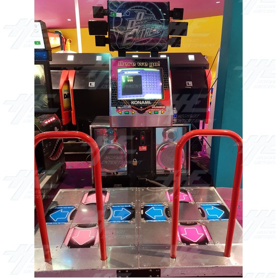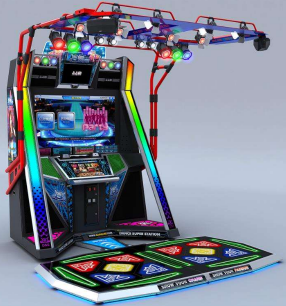 早些时候在国内经常可以看到的跳舞机,现在的出镜率已经逐渐被E舞成名所替代。其后背的扶手是给玩家保持身体平衡用的。