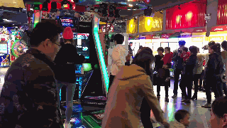 在逛商场的时候,时常会听到某一楼层传来喧嚣的电玩音。顺着音源方位走去来到电玩门口,可以看到一群人在一台大型台机面前围观,大概就是图中这样。