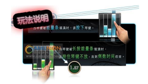 类似于钢琴键盘的简易版,根据节奏在按键即将被填满的时候按下按键即可完成演奏。