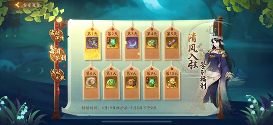 清风入弦 天籁之音箜篌续引目前,“雪落何处寄清音”复刻活动正在游戏内火热进行中!游戏为降妖司们准备了丰厚的每日签到福利,累计签到10天即可领取包括3枚“唤灵符”、2枚“现世封印符”、2枚“活动唤灵符”、5枚“玉璧”、2个“金色礼物礼盒”在内的海量珍贵道具。