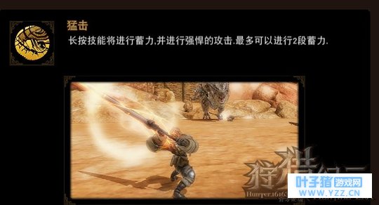 (炮击效果) 猛击: 长按技能将进行蓄力,并进行强悍的攻击。最多可以进行2段蓄力。(使用技能需要2点资源)