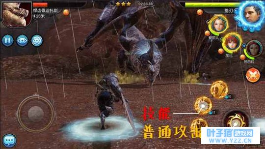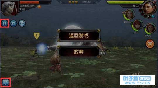 靠近敌人时,利用普攻对怪物造成一定伤害并收集资源。资源达到一定量的时候,就能释放技能,从而造成更大的伤害,消灭敌人,顺利通关。 四. 辅助功能 “自由/锁定视角“按钮点击后会从怪物的固定视觉变为自由调节的视角,点击画面可以带动方向视角。一般情况下用不到自由视角,有时还会对战斗产生障碍,建议使用一般的固定视角战斗。右边中部位置的是“自动战斗”按钮,手残党的福音,不过打到高级boss相对来说作用就不那么大了,Anyway 还是得多进行手动操作。“伙伴与角色的视觉切换”这个按钮需要开启“自动战斗”的时候才会显示出来。 五. 暂停游戏