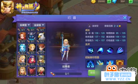 神之物语骑士种类多样,主要包括物攻型、法攻型、物防型、法防型、辅助型五大类,并按照骑士资质分为1-3星、2-4星、3-5星三个不同的等级,每个等级的骑士可在星级范围内获得晋升。而萌新们初进入游戏,想要快速成长发育,招募易上手、攻击高的骑士是不错的选择。 萌新攻击手——剑舞者