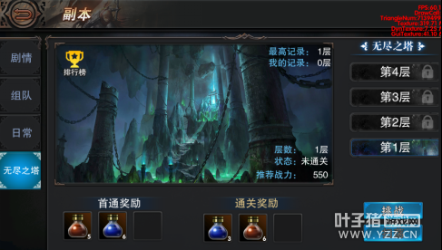 A. 游戏内存在着一些相对比较危险的副本场景,玩家需要组队多人进入冒险。 B. 玩家组上足够的人数,就可以通过副本界面进去组队副本进行冒险,通关后所有人都可以获得副本奖励。 C. 当然,如果你自身足够强大,自己进入其中也是可以的。 4. 日常副本玩法 A. 除了比较危险的副本外,游戏内还有一些相对安全的福利副本。 B. 每日副本,每日限定进入次数,内部相对安全。 C. 主要是金币副本,经验副本。玩家进入其中,在内可以获得大量的金钱和经验。 5. 无尽之塔玩法