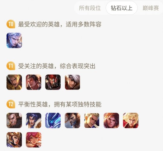 王者荣耀:钻石局以上段位人气最高的是峡谷砍王,吕布跌落至T1