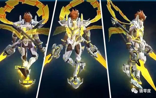 新皮肤也是机甲风,晃眼一看有点神似赵云,身穿银色盔甲,同时飘带和武器都是以黄色为主色调。 逐梦之翼出场动画展示: