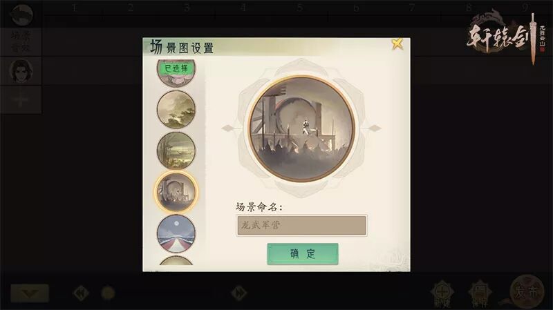 游戏内提供了 深山 、 湖泊 、 军营 、 禁宫 等多种场所 还支持 自定义名称 的戏剧场景表达