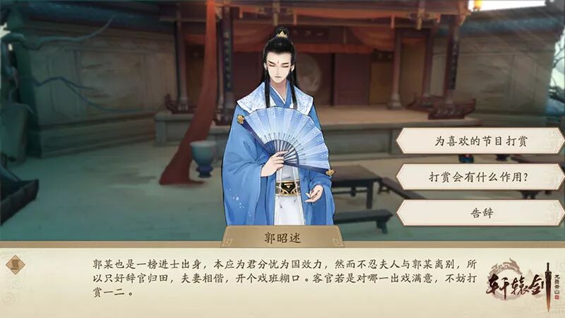少侠们今后路过山南道时 不妨在台下 坐一坐 看看正在上演的戏剧 还可以直接找郭老板 查询 戏班的其他节目哟