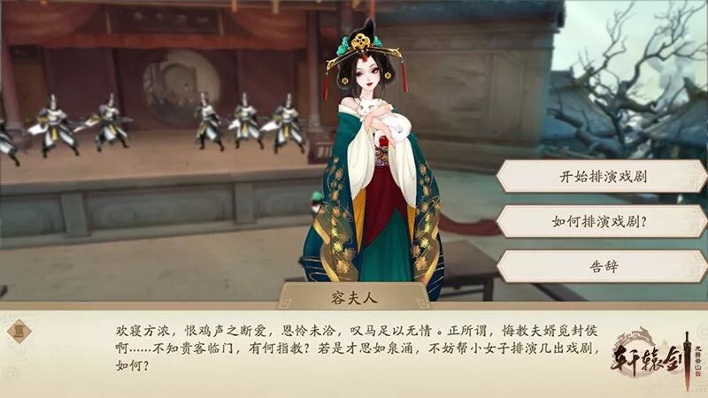 如果少侠们觉得 戏台上的演出不够精彩 也可以向 容夫人 自告奋勇 亲自排演 一出戏剧