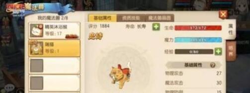 大红的蝴蝶结实在是太可爱了,更别说虎头虎脑的!说到这里大家是不是突然感觉它有点眼熟呢?没错啦,它的原型就是:就是原著第222话-具象之弧海报,趴在艾露莎女王脚边的那只肥猫。资质一览首先从资质上来说,作为史诗级魔法兽,瑞猫的资质生来全满,并不需要小伙伴再消耗资源培养。 其次瑞猫的寿命资质为长寿,就是说只要获得后,就不需要再花费额外的金币喂养,可以一直陪伴在你的身边!技能详解 瑞猫与其他魔法兽技能全随机不同,获得瑞猫时会必带两个技能。一个必带技能:主动技能招财进宝。 对敌方三个目标造成魔法伤害,伤害与自身等级和属性有关。这是一个群体伤害技能,能够给敌方前排制造可观的伤害。第二个必带技能:被动技能高级复生 瑞猫阵亡后有30%的几率原地复活并恢复全部生命值。这个技能算是一个超级逆天的技能了,而且触发几率并不算低,一旦触发相当于多了一条命,往往能够有机会扭转战局!从这两个技能有没有感受到瑞猫的强大呢?除了这两个必带技能,还会随机获得其他技能(诸如攻击潜行目标、获得免伤效果等)。如果想要获得其他的技能,有两个途径:在重置资质的时候可以有概率刷新原有技能。当然,更稳的做法是开启技能格,技能格越多,可以学习的数量就越多,然后再去收集技能书,根据需要来学习,宠物技能就越来越拉风啦!领悟技能 虽然每只魔法兽都只能带两个领悟技能,但是可以学习的的领悟技能很多的,洛洛选择了岚和魔,岚可以提高瑞猫的速度和魔攻,魔则专注于魔攻的提升,洛洛想让自家的主子成为这条gai魔攻最强的喵!大家可以和洛洛选一样的,也可以去开发新的组合哟!魔法兽晶圆 当小伙伴达到一定等级,就可以开启魔法兽晶圆的培养了,瑞猫有四个魔法晶圆位,在晶圆选择上,洛洛还是增强速度和攻击。额外一提的是,镶嵌特定的4个晶圆,是可以激活特殊技能的,特殊技能据说贼厉害,洛洛也还在探索中,魔导士大大们玩到的时候可以告诉洛洛怎么搭吖!实战表现瑞猫的特点就是拥有高额的群体伤害! (这一招就是上文提到的必带技能:招财进宝,群伤技能,史诗级魔法兽果然很炫酷!)同时,瑞猫的特殊属性上,有魔法攻击100%命中,所以,不用担心命中率的问题。因此,瑞猫不仅是闯荡魔法世界的伙伴,更是一个超有力的打手哟。获取方式爆料这么多,而小伙伴最关心的肯定是如何获得瑞猫了。瑞猫的获得途径目前比较单一,只能够通过商城购买!所以各位魔导士要尽快参加各种活动和任务,好攒钱购买它哦! 编辑:叶子猪小秘书