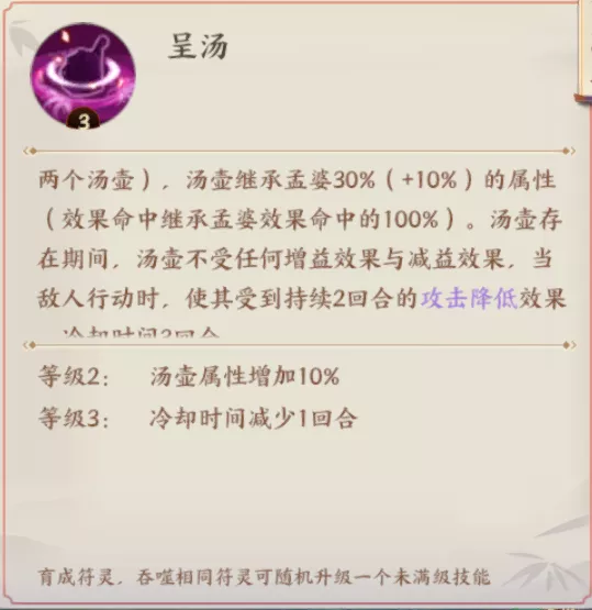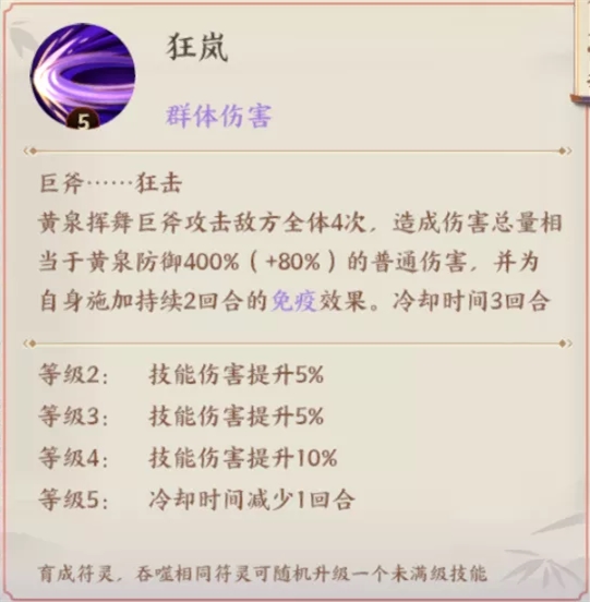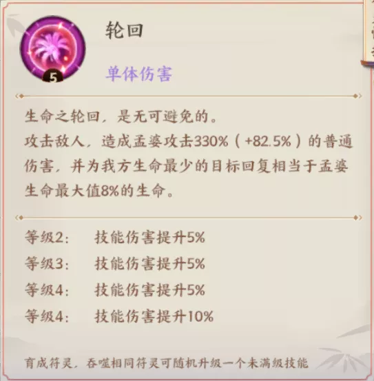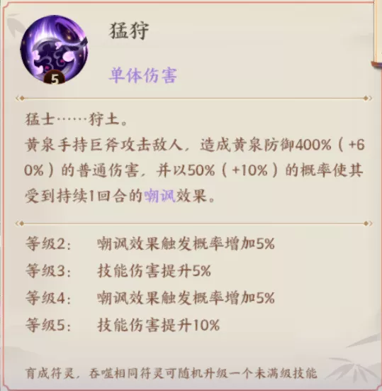 也许有灵主大人已经发现了,在与其他高手进行切磋时,千篇一律的阵容只会让战斗变得难舍难分。多思考与尝试一些冷门符灵,进行巧妙搭配,往往能够出奇制胜。 这是因为在云梦之境中,每一个符灵都有独特的技能。将这些技能运用得当,往往会获得意想不到的结果。今天带大家重新认识一下其中两个冷门的绝品符灵——黄泉、孟婆! 黄泉 黄泉是一个防御能力极强的符灵,因此星宿装备选择更多的是提升防御能力,从而注定它的攻击和速度并不优秀。但是慢并不一定代表弱,接下来我们就一起来为黄泉正名吧!? 黄泉技能解析 壹:猛狩 有着高达460%比例的单体伤害,并且60%概率嘲讽敌方使其强制普攻自己。不仅有着超高比例的技能系数,还能嘲讽敌人吸收伤害保护队友。 贰:轮回·极 被动禁止复活,在妖界黄泉减伤系数高达45%,不论敌方伤害多么猛烈,也只能对黄泉造成一半的效果,同时还有30%概率以60%伤害的大招进行反击,不受大招冷却影响! 配合斗木獬套装效果,反击概率可以叠加至60%,大概率的反击能力使其每次受击都可能使用大招反击敌方,完全无视速度的存在,最擅后发制人。 叁:狂岚 AOE伤害比例高达防御的480%,同时自身获得免疫BUFF2回合。 冷却3回合,超高的伤害系数,同时自身还具有免疫效果,作为一个防御属性极佳的符灵,对方很难对自己施加破甲,再配合奶系符灵回血、防御提升的效果,几乎成为不死的存在。 培 养 思 路 从黄泉的属性中不难发现,黄泉的防御力几乎与攻击力持平,且技能伤害方面与防御值挂钩,因此大家在培养黄泉的时候,应着重于堆积防御属性。 星宿推荐 斗木獬 牛金牛 一般符灵堆输出的方式是追求基础攻击力的叠加,通常会选择角木蛟4件套。而选择斗木獬四件套作为主星宿的黄泉,单论一次攻击的伤害必然追之不及,但因为技能伤害的机制,实际上也相差不远。 另外,斗木獬四件套与黄泉被动技能效果可以叠加,使黄泉的攻击次数远远高于其他符灵,在最大化其防御值的同时,也就等于将他的技能伤害最大化。 此外,为了更快的让黄泉具有优秀的战斗能力,建议首选主属性为百分比防御,次选主属性为暴击率的星宿进行搭配。 通过大量的防御加成,黄泉防御值完全可以达到输出符灵攻击值的高度。再配合纸神、孟婆等具有防御提升效果的符灵,队伍中的黄泉不仅能拥有超强的防御力,同时也具有强大的输出能力。 孟婆 孟婆的定位为治疗型辅助,有着优秀的生命和速度基础,这两个因素又恰恰与孟婆的回血能力挂钩。因此在培养时,我们要着重针对这两个天赋,扩大其天生的优势。 孟婆技能解析 壹:轮回 孟婆的技能一具有少量伤害能力,但最重要的还是每次攻击后,能为己方血量最少的符灵恢复孟婆最大生命值8%的血量。 假如孟婆血量叠加到了3W,那么一次普攻就可以恢复血量最少符灵2400生命,可以在没有大招的回合里,稳稳地治疗队友。这一技能可以称得上回血类的小神技了。 贰:呈汤 召唤汤壶上场,继承了孟婆40%自身属性,同时存活期间持续向敌人施加攻击降低效果,使敌人不得不浪费大量输出来击杀汤壶。 叁:灵气护佑·极 为全体回复孟婆最大生命值30%的生命,同时为全体施加2回合的防御强化效果,瞬间将团队的血量拉满,大幅提升防御力,使团队的续航能力极大的提升。 天劫之后的孟婆每次释放大招都可以减少全体符灵技能冷却1回合,更是大幅加快了团队释放技能的频率。所以这一技能在战团当中,可以称得上是举足轻重。 培 养 思 路 孟婆具有极高的生命和速度基础,因此大量叠加生命加成和速度加成才是最佳选择。 星宿推荐 箕水豹 室火猪 培养孟婆的速度,主要是因为可以让孟婆行动的频率变得更高,进而更快地刷新团队符灵的技能CD,使团队输出节奏大幅提升。 堆积血量则是因为孟婆回血机制的关系,只有把孟婆自身的血量抬上去,才能为团队带来更高的奶量。 孟婆的星宿属性选择方面,灵主大人们可以首选生命力加成的属性,次选速度加成。毕竟孟婆最重要的能力,还是为了恢复全队的血量而存在的。 看了小籍的分享 灵主大人们是不是也觉得 黄泉和孟婆这种冷门符灵 也有大用处呢? 其实每个符灵 都拥有强大的技能效果 只要多了解符灵的技能特性 再加以合适的阵容搭配 就能发挥出符灵的真正威力! 灵主大人还知道哪些 冷门但能力强大的符灵呢? 快在下方留言处写下来 和小伙伴们一同分享吧! 编辑:叶子猪小秘书