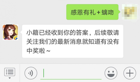 正文: 感恩节就要到了 云梦之境中一派其乐融融的气氛 可是小籍却不能和大家一起玩 (*  ̄︿ ̄) 昨日小锦鲤突然找上门来 说她为自己的恩人云中君 准备的感恩节火鸡 在夜里居然被偷走了! (看来不得不由我名侦探小籍出马了!) 小籍自然不能放任凶手逍遥法外 所以今日以丰厚酬劳 请诸位灵主大人一起调查 这个嘴馋的小偷究竟是谁! ↓ ↓ ↓ 云梦侦探队:荷塘迷踪 根据小锦鲤所说,这个偷窃火鸡的小贼曾经在现场留下了许多蛛丝马迹,所以我们第一站便来到了小锦鲤的家中:荷塘。 虽然已到立冬,但是小锦鲤的家乡荷塘依旧温暖如春。清澈的水波上莲花与荷叶相间,小籍走在岸边还能看清自己的倒影呢~ 不过在这片宁静的世外之地,却有几瓣梅花留在荷叶上,灵主大人们发现了没有呢? 小籍 灵应宫侦探团第一关:在荷塘之中,共有几片梅花瓣留在荷叶上? 云梦侦探队:字谜寻凶 经过几番周折,小籍循着蛛丝马迹追到了一片密林。不过现在正值初冬,地面上枯叶层层覆盖,很难从上面看清嫌犯的脚印。 (这可怎么办?) 经过小籍在周遭细细的搜查,发现在一旁的树干上竟然刻着一行小字,看笔迹很像先生留下的,难道他曾经在这见过元凶? 小籍 先生先生,你是不是在荷塘旁的密林中见过窃贼? 先生 我已经留下了线索给你,自己去查探吧。 小籍 为什么不能直接告诉我们? 先生 这也是对你们的一次考验,想要帮助别人不能只靠一时冲动,也要有相应的能力。 先生好像说什么都很有道理……小籍只好重新去看那行先生留下来的线索。 先生留下的提示好像是一个字谜,灵主大人们能帮帮小籍吗? 灵应宫侦探第二关 西水为邻各一方。 (打一字) 云梦侦探队:怪盗现踪 一路追随着蛛丝马迹,抬眼一瞧前方已然到了洛阳城外。 金阙晓钟开万户,玉阶仙仗拥千官。繁华热闹的人间中洛阳古城最为壮丽,在这么多人中寻找一个小贼的踪迹无异于大海捞针。 不过就在小籍为此愁眉不展之际,却刚好碰见了两只符灵在谈论昨日所见到的奇事: 九尾灵狐 昨天吓死我了,那片荷塘的水可真深 螭吻 切,这就害怕了,我们东海的海水比这深多了 小籍 原来就是你们偷走了小锦鲤的火鸡! 九尾灵狐 不是不是,是一个神秘黑影干的,我们两个是一路追他追过来的,半路上还差点掉进荷塘里。 小籍 那你们追到他了吗? 螭吻 没有,不过我们从他身上抢来一只酒坛,喏,就是这个 ↓ ↓ ↓ 这只酒坛有些眼熟,小籍一时间有些想不起来了,诸位灵主大人看出这是谁经常用的酒坛了吗? 小籍 灵应宫侦探第三关:这只酒坛就是真凶的,灵主大人们快把他找出来吧! 感恩前夕送好礼 活动时间 11月20日—11月23日 活动奖励 云梦神秘大礼*1 活动方式 猜到答案的灵主大人在《云梦四时歌手游》公众号后台,通过编辑关键字“感恩有礼”+答案的形式,即可参与活动啦! 举个栗子~ 通过大家的努力 真凶的面目逐渐浮出了水面 小锦鲤也可以将心意 带给自己的救命恩人啦! 感恩节将至 大家有没有什么想对某个人说的话? 快在下方留言处写下来 小籍会帮你传达到的哦~ 编辑:叶子猪小秘书